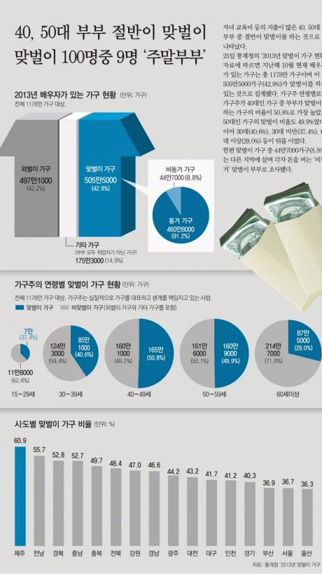 (2014년 기준 우리나라 맞벌이 가구 비율은 44%로 집계되었다.)