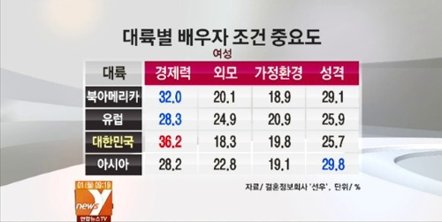 전 세계적으로 볼 때에도 여성의 결혼 조건" 1위는 경제력"이다.