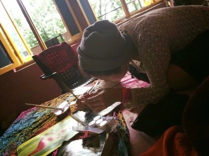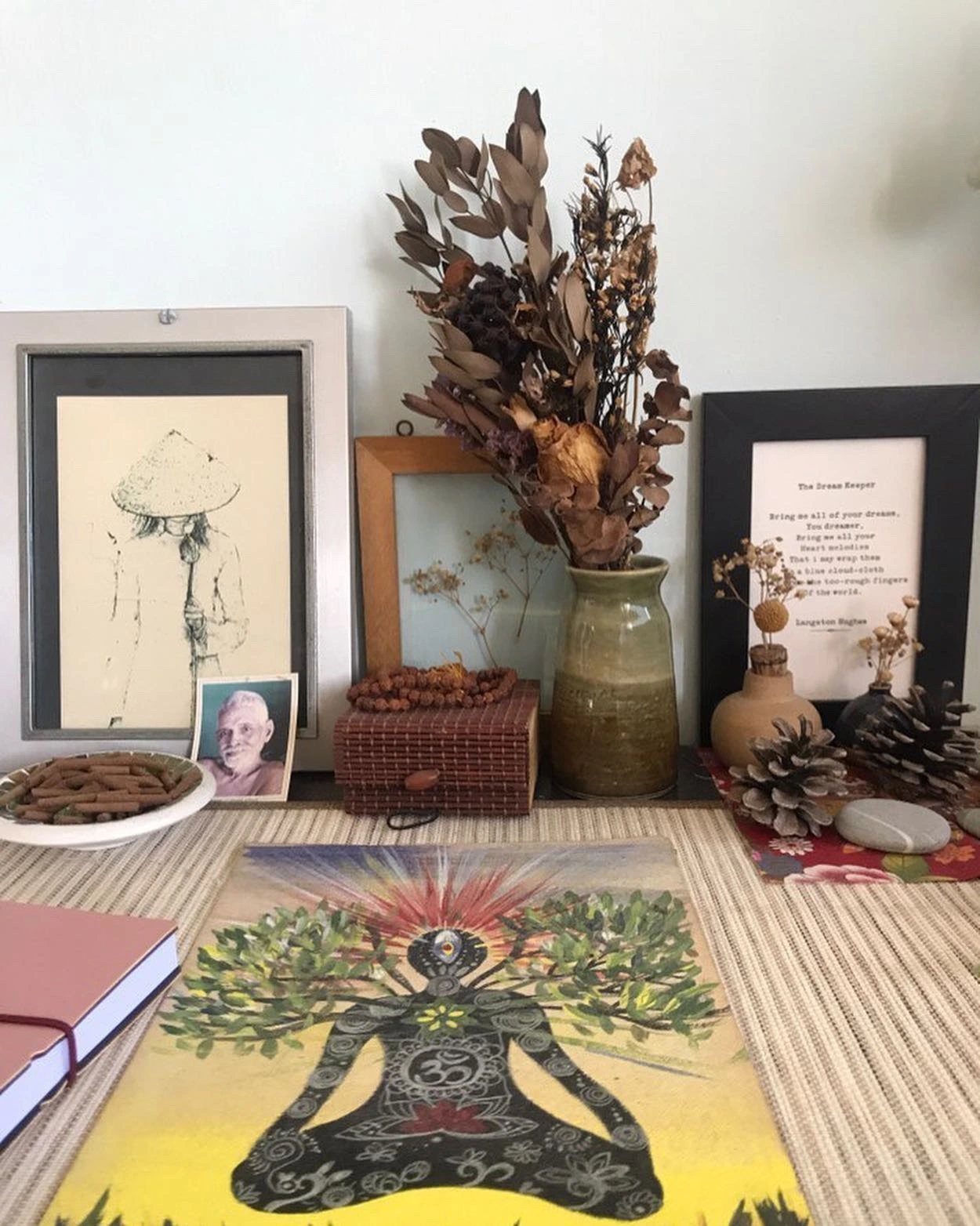 인도 여행을 하다가 지갑을 잃어버린 적도 있었는데 그날 만난 친구가 그림을 사줘서 나는 내가 좋아하던 다람살라에서 아무 걱정없이 행복하게 명상을 하고 그림을 그리면서 머물다가 한국으로 무사히 돌아올 수 있었다. 나와 그 곳에서 함께하며 정말 많이 웃고 마음이 잘 맞았던 친구는 5년이 지난 오늘, 이 사진 한장을 보내왔다. 지난 5년 인도에서 캐나다, 싱가폴로 이동을 하면서 자신의 성소에서 내가 그린 그림과 함께 하며 너의 행복을 위해 기도한다는 말과 함께.