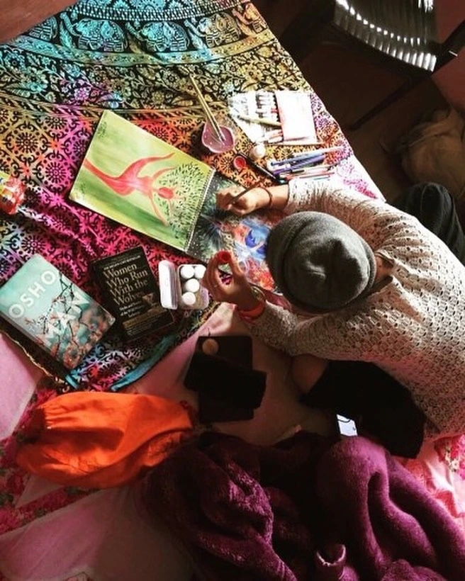 여행을 다니다가 명상을 만났고 명상을 시작하면서 그림을 그리기 시작했다. 그림을 그리기 시작하면서 나는 응어리져있던 감정들이 서서히 녹기 시작했고 가벼워졌고 자유로워졌다. 그림을 배워본 적은 없었지만 내 안에서 주체할 수 없는 에너지를 분출시키기 바빴기에 다른 사람의 목소리에 귀 기울리기 보다 내 영혼이 전하는 소리에만 집중했다. 나에겐 잘 그리고 못그리는 그림이 없었다. 그냥 그리는 자체의 기쁨과 희열이 있을 뿐이었다. 그냥 그 자체가 사랑이고 평화였다.