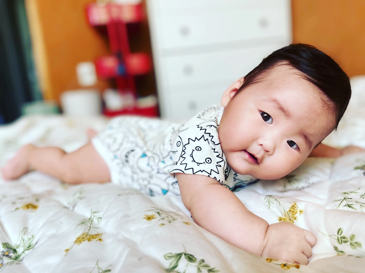 아이가 자다가 일어나서 놀랬을 때 달려가 토닥 토닥, ‘ 괜찮아. 엄마 여기 있어’ 이 한마디에 안심하고 다시 잠이 드는 모습을 볼 때마다 곁에 있을 수 있어서 다행이다 싶기도 하고 요즘 수십, 수백번 뒤집기 연습을 하는 모습을 바라볼 때마다 감동적이고 뭉클한 감정들이 가슴 깊은 곳에서 몰캉 몰캉 피어오르는데 지금 이 순간 이 보다 더 중요한게 또 뭐가 있을까 싶기도 하다.