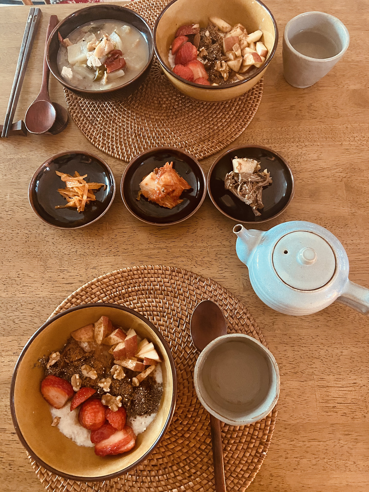 아침에 밥과 국을 먹어야 되는 사람, 아침을 잘 먹지 않는 나. 황태 뭇국과 오트밀, 페퍼민트 차. 남편이 샤워하는 동안 나는 이 글을 쓴다. 평소보다 더 평화롭고 여유있는 아침에 감사하며-
