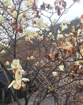 지난주 월요일 아침 집 근처 목련이 누렇게 바랬다.