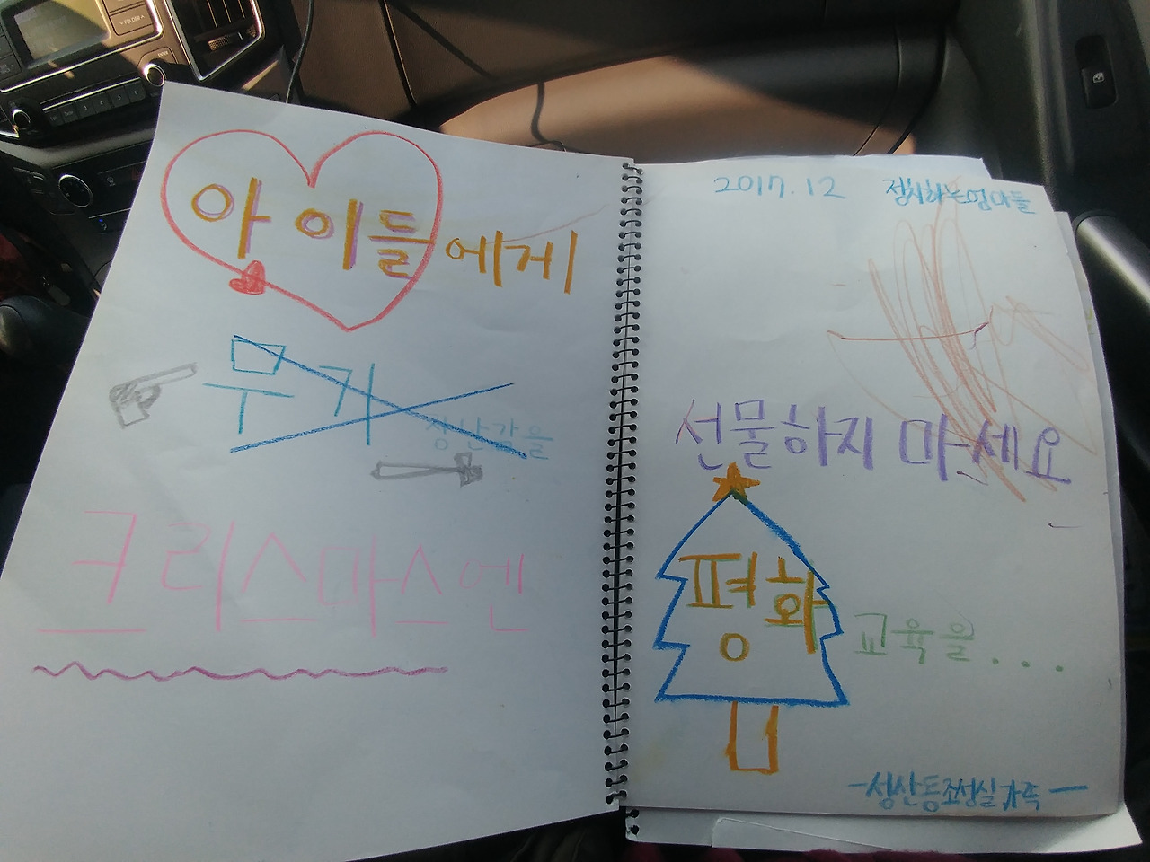 평화는 때때로 대단한 결단을 촉구하는 것이기도 하지만, 더 많은 순간 평범한 모습으로 우리에게 다가오기에. 그 작지만 강력한 실천들에 함께하자고 초대장을 건네는 마음으로 이 자리에 섰습니다. 아이들에게 무기 모방 장난감을 선물하지 않고 평화와 연대에 대한 상상력을 선물하는 것. 그 일부터 함께 실천해갔으면 좋겠습니다. 지구 저 편의 난민친구를 위해, 북에서 총 맞고 건너 온 무명의 북한 군인을 위해 기도하는 이 아이와 그 친구들이 혐오와 차별을 당연시 하는 어른으로 자라가지 않기를 간절히 열망합니다.