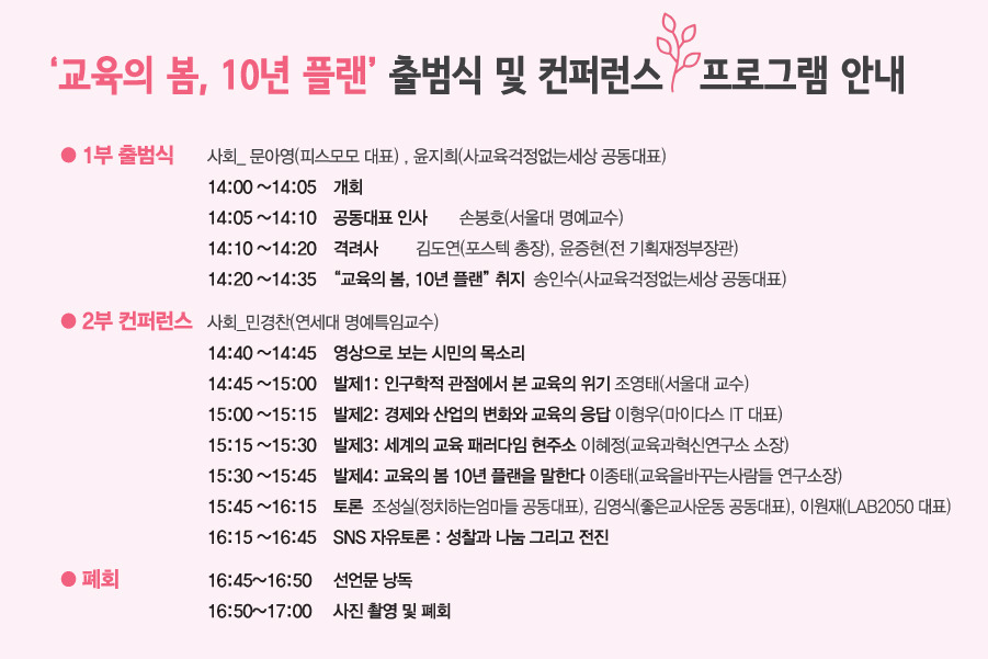 교육 개혁 시도 뒤에는 부모와 학생의 불안을 조장하는 더 많은 총량의 마케팅이 쏟아진다. 반면, 우리 사회에는 민간 시장을 중심으로 쏟아지는 편향된 교육 정보들에 대항할 과학적 자료가 너무나도 부족하다. 발표된 교육개혁안이 추진할 동력을 얻지 못하는 이유이기도 하다. 오늘 시작을 알리는 ‘교육의봄, 10년 플랜’ 운동 역시 시작과 동시에 더 많은 총량의 부정적 마케팅에 부딪칠 것이다. 그럼에도 불구하고 포기하지 않고 우리 함께, “변화를 만들어내자”고, “그래야만 한다”고 외쳐갈 수 있기를. 끝끝내 봄의 내음을 함께 누릴 수 있기를.