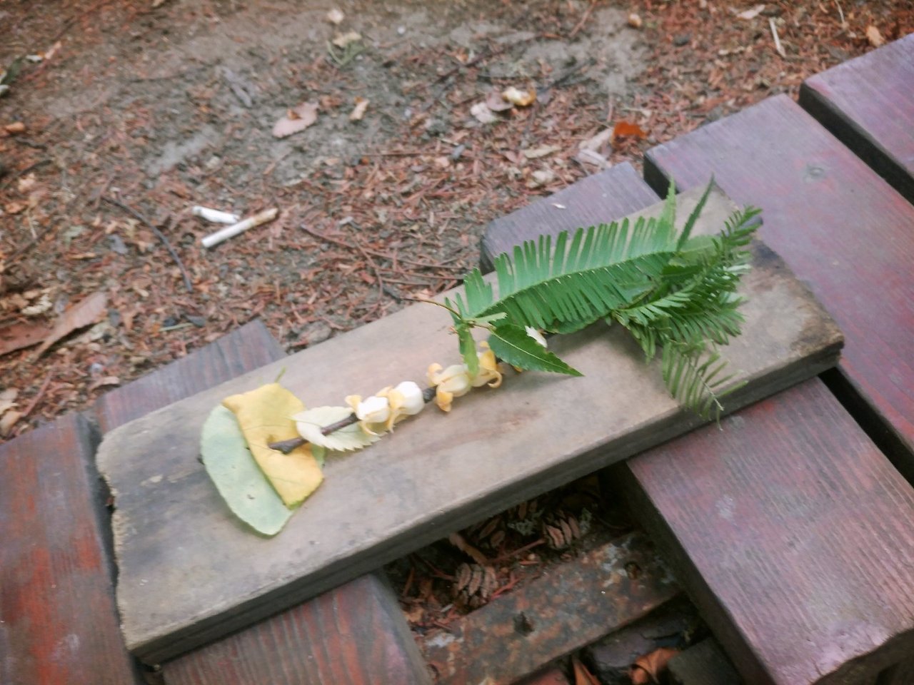 오늘 산에 다녀오는 길에 엄청 빨갛고 예쁜 열매를 모았어. 내가 엄청 열심히 모으고 있는데 옆에 또 진짜 큰 나뭇잎이 있는거야. 그래서 빨간 열매 꼭지를 나뭇잎에 찔러서 예쁜 꽃처럼 만들었지. 엄마가 좋아할 것 같아서.... 내일 공동육아 방 가서 꼭 가봐. 내가 일부러 챙겨놨거든.