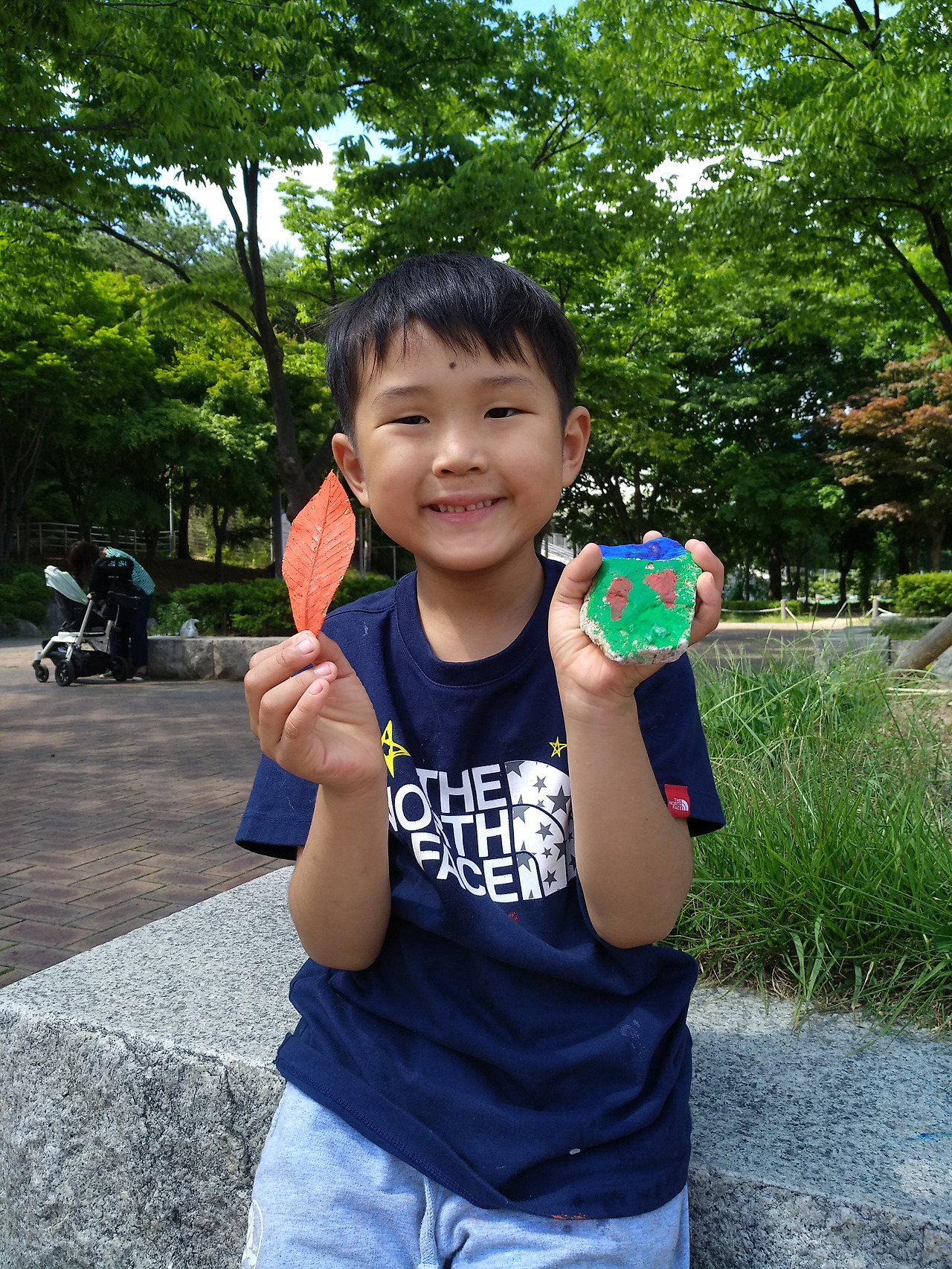 며칠 전 공동 육아에서 아이들과 외출을 했다. 마음에 드는 돌을 고른 후, 그 돌을 스케치북 삼아 각자 물감으로 채색을 했다. 저마다 돌의 특징을 잡아 원하는 바를 잘 그려냈다. 청명한 햇볕과 무성한 나무 아래서 굴러가는 말똥만 보고도 데굴 데굴 구르는 아이들을 보고 있을 수 있는 그 순간이 어찌나 소중하던지. 작업을 마치고 얕은 산을 지나 집으로 돌아가는 길 아이들이 수다를 시작했다. 작지만 건강한 대여섯살의 친구들에게 사뭇 진지하게 고민을 털어놓기 시작한 서른 세 살의 나.