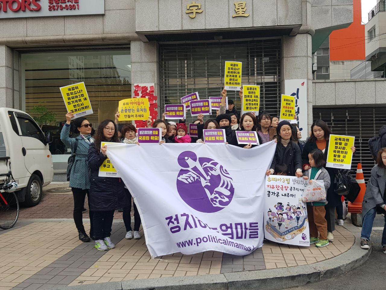 정치하는엄마들은 현재 한유총을 비호해 온 국회의원 명단 공개 카드뉴스를 격일 공개하고 있습니다. 이장우 곽상도 이군현. 카드 뉴스가 발표할 때마다 대형 포털 사이트에 관련 의원들 이름이 연관 검색어로 오르고 있는 상황입니다. 의원실에 집중 전화 민원도 진행하고 있습니다. 아이들의 안전과 위생 행복과 교육권을 보장하는 유피아 3법에 반대하는 누구에게라도 끝까지 정치적 책임을 묻겠습니다.