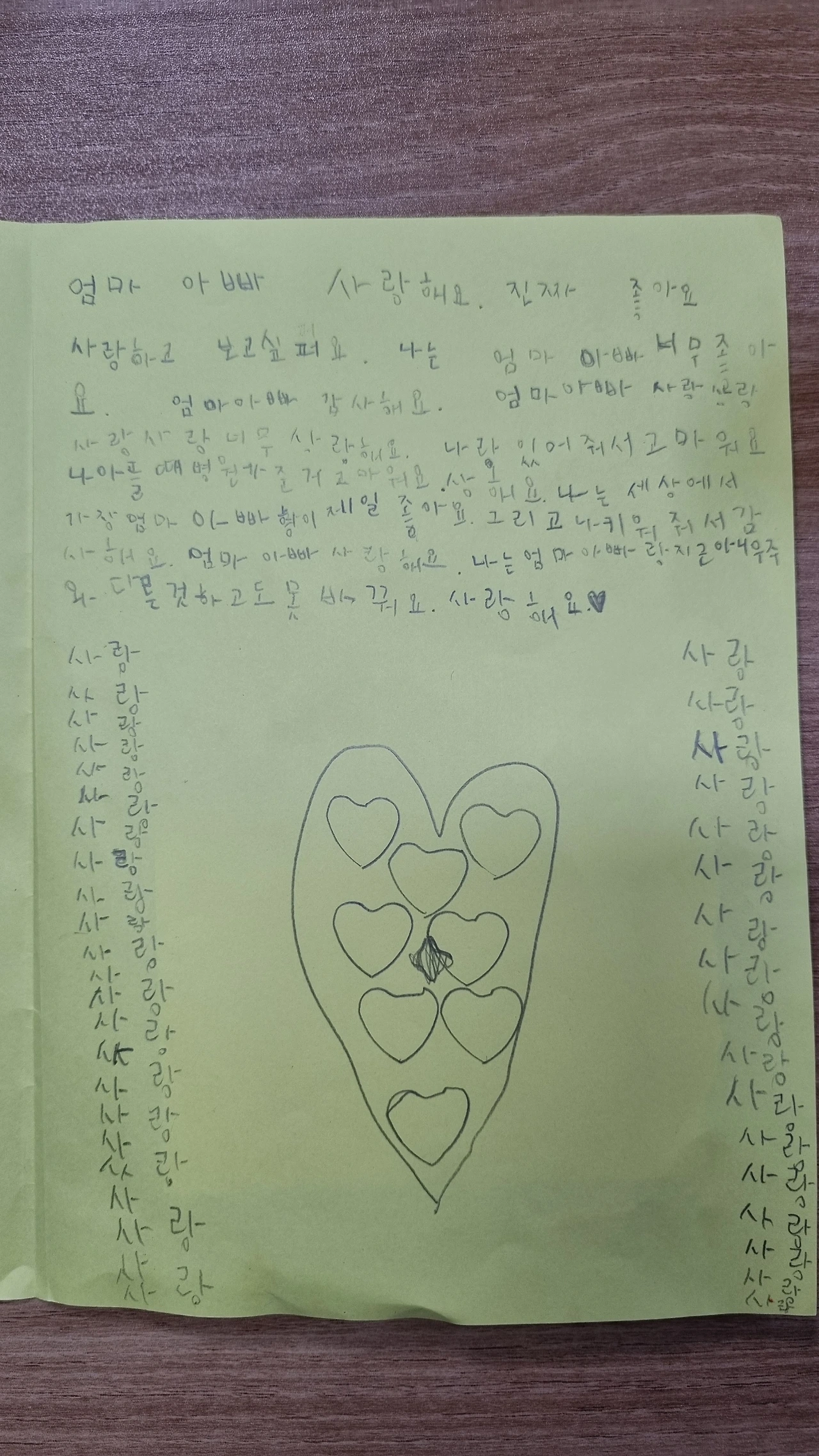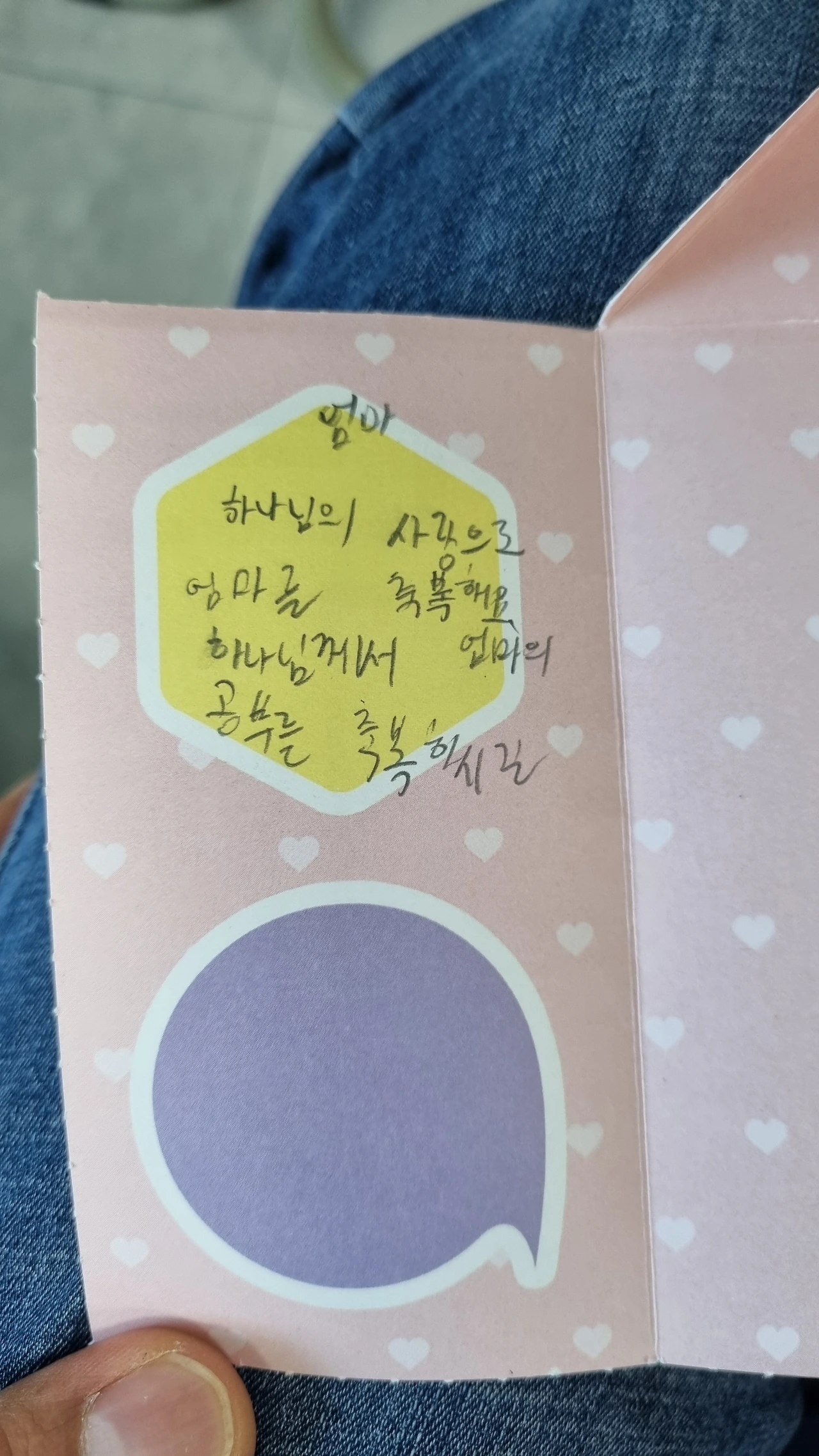 엄마가 자기들과 떨어져 혼자 공부하는게 힘들어보여서, 그치만 자랑스러워서 사랑한다는 말로 힘을 주고 싶었다고.