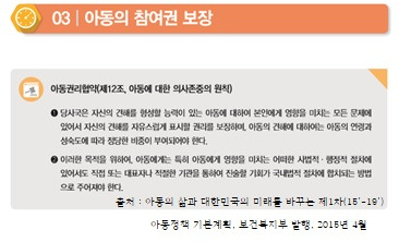 실제로 유엔아동권리협약 제 3·4차 국가보고서 심의결과 참여권에 해당하는 유엔아동권리위원회 권고사항은 다음과 같다.