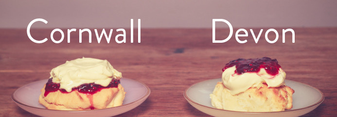 크림 티는 원래 콘월/데본에서 유래되었다고 하지만, 명확한 근거는 없다. 그래서 서로 자기네 지방이 원조라고 주장한다. 최근에 데본에서 11세기에 빵과 잼을 같이 먹었다는 문서 기록이 발견되었다는 사실을 기반으로, 데본 사람들은 자기들이 원조라고 주장한다. 데본에서는 스콘에 크림을 먼저 바르고 그 위에 잼을 올려서 먹는다. 이른바 데본 크림 티다.