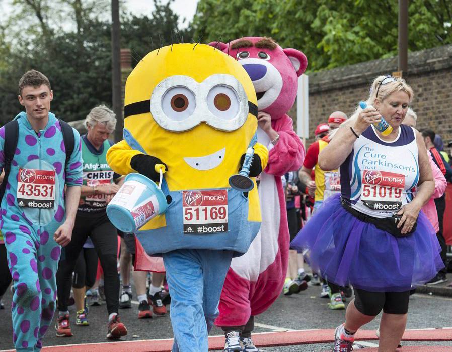 한 번도 장거리를 뛰어 본 적이 없는 나 같은 사람들은 참가자들에게 경외감이 들면서도, 한편으론 그런 생각이 들 지도 모르겠다 - 저렇게 힘든 스포츠를 왜 하는 걸까? 심지어 무거운 분장까지 해서 뛰는 사람들은 왜 그렇게까지 뛰는 것일까?? 기본적으로 당연히 마라톤이 좋으니 달리겠지만, 사실 런던 마라톤이 짧은 기간에 유명해진 이유는 참가자들이 자선 모금을 위해 달리기 때문이다.