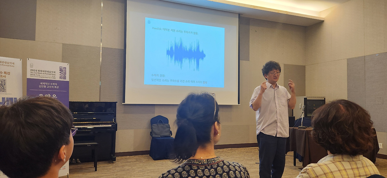피타고라스라는 불세출의 고대 수학자는 이미 음계와 주파수의 비율을 알아내서 음악이론의 토대를 쌓아놓았다. 음 자체, 배음과 화음 등 수로 이해될 수밖에 없는 운명인 음악이라면, 프로 음악감상러의 난이도조차 뛰어넘은 김민형 수학자의 강연도 지극히 자연스럽다. 온라인 음 생성기를 돌려가면서 그는 그래프로 그려진 음과 음악의 정체를 드러낸다. 0과 1의 조합으로 만들어진 정보로서의 음을 소개한다. 곧 듣게 될 바이올린 선율의 원천은 이것이었구나. 김민형 수학자의 강의는 대관령음악제 감상을 위한 훌륭한 애피타이저가 되었다. 애피타이저는 알펜시아 콘서트홀의 메인 디쉬로 부드럽게 이음줄로 연결되었다.