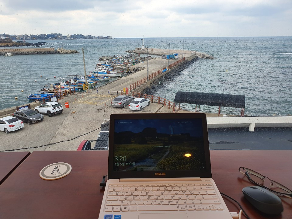 드라마나 영화 제작에 협찬이 있다면 보잘것없는 저의 글에도 협찬처가 있습니다. 보통 협찬과 다르긴 합니다, 커피값을 제가 치르니까요. 그러나 계산해 봅니다. 산과 바다가 눈앞에 펼쳐진 카페에서 커피 한잔과 함께 하는 글쓰기는 손님이 가득 들어찬 도심 한복판 커피숍에서의 그것에 비해 얼마나 효율이 높을지, 만약 이런 곳에서 글을 쓰지 않았다면 내용은 얼마나 더 부실해졌을지. 뛰어난 작가라면 탓할 수 없는 여건들이 저에겐 심대한 영향을 줄 수 있는 노릇이니 그동안 자리 잡은 제주의 카페들은 커피값을 지불하더라도 그 몇 배, 혹은 몇십 배에 가까운 효과를 얻을 수 있는 진정한 협찬처임에 틀림없었던 것입니다. 글을 써 내려가다 막힙니다. 고개를 잠시 들면 곧 제주의 환상입니다. 큰 숨을 쉬고 멍청히 바라봅니다. 글감이 떠오릅니다. 다시 고개를 숙이면 될 뿐입니다.