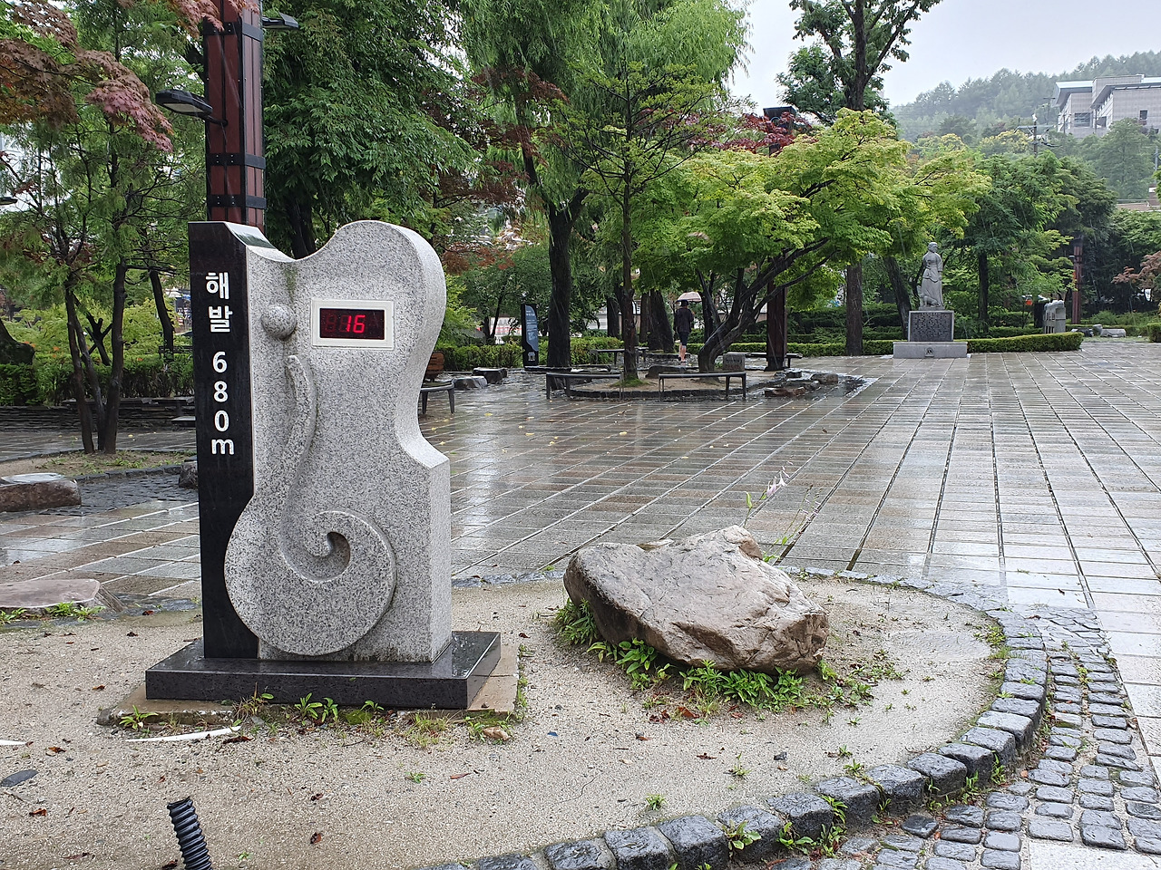 황지동을 다시 찾은 것이 7월입니다. 장마철이라고는 하지만 여름이지요. 해발 680미터 안내 조형물에 표시된 기온이 보이시나요? 네, 16도입니다. 지구 온난화가 그간 이 산골에까지 영향을 미쳤을지는 모르겠지만 기억 속에 있는 태백의 여름은 최고로 더워봤자 27도 정도이고 열대야란 것은 경험할리 만무하며, 따라서 시내에 있는 가전사 대리점에는 선풍기는 있을지언정 에어컨은 취급하지 않았던 것이었습니다. 기억을 더듬어보니 처음 여의도에서 김병찬 선배와 방송했던 내용이 '시원한 태백의 여름'이었습니다. 이런 과거를 깡그리 잊고 반소매를 입고 돌아다니다니... 망각의 동물이 된 벌칙은 온몸에 돋아난 소름과 코로나 시대에 주위를 위협하는 재채기였습니다. 여름 태백행의 필수품은 점퍼 혹은 후드 티셔츠입니다. 잊지 마시길.