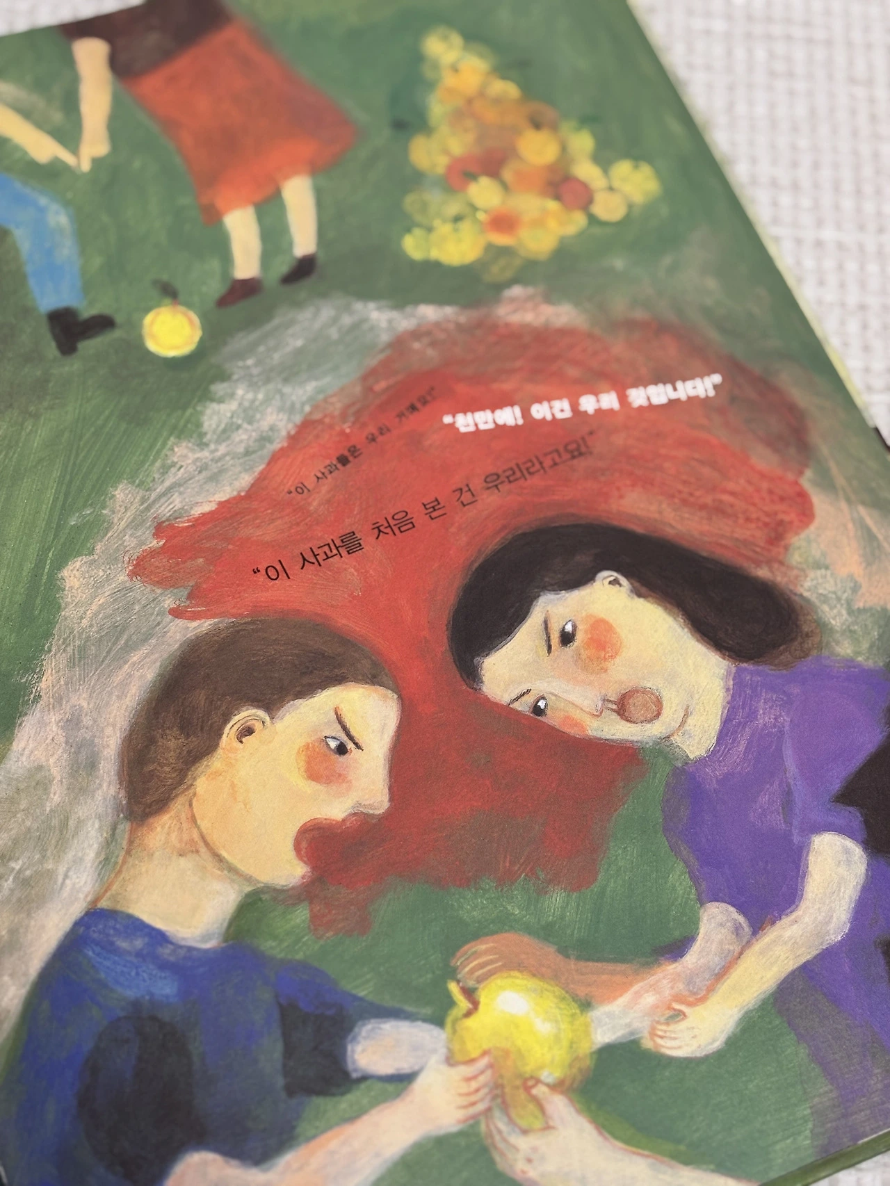 아니나 다를까, 사람들은 이 황금 사과의 소유권을 두고 열심히 싸우고 있었어요. 싸우는 순간에도 서로 타협의 의지는 없는 건지, 눈맞춤 하나 없이 그저 사과만 바라보며 투쟁 중입니다.
