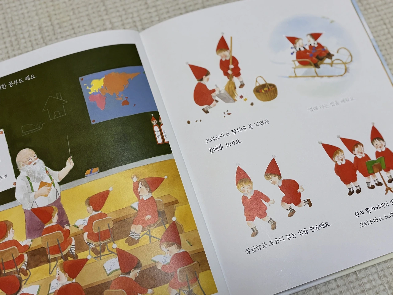 산타 할아버지를 도와 편지를 분류하고, 선물을 포장하는 작업까지 바쁜 하루를 보내는 아이들이에요. 유치원생들이 이렇게 정교하고도 섬세한 작업을 할 수 있다니, 그럼에도 고단해 보이기는커녕, 오히려 온화함만 가득한 아이들의 모습이 참 대단해 보여요. 산타유치원의 교육목표가 무엇일지 문득 생각해 보게 됩니다. 산타를 육성하는 곳일까, 그렇다면 단순히 선물을 전달하는 것을 뛰어넘은 인류애와 그에 걸맞은 인성, 품위를 갖춘 사람이 되는 것으로 키우는 곳이 아닐까, 생각해 봅니다.