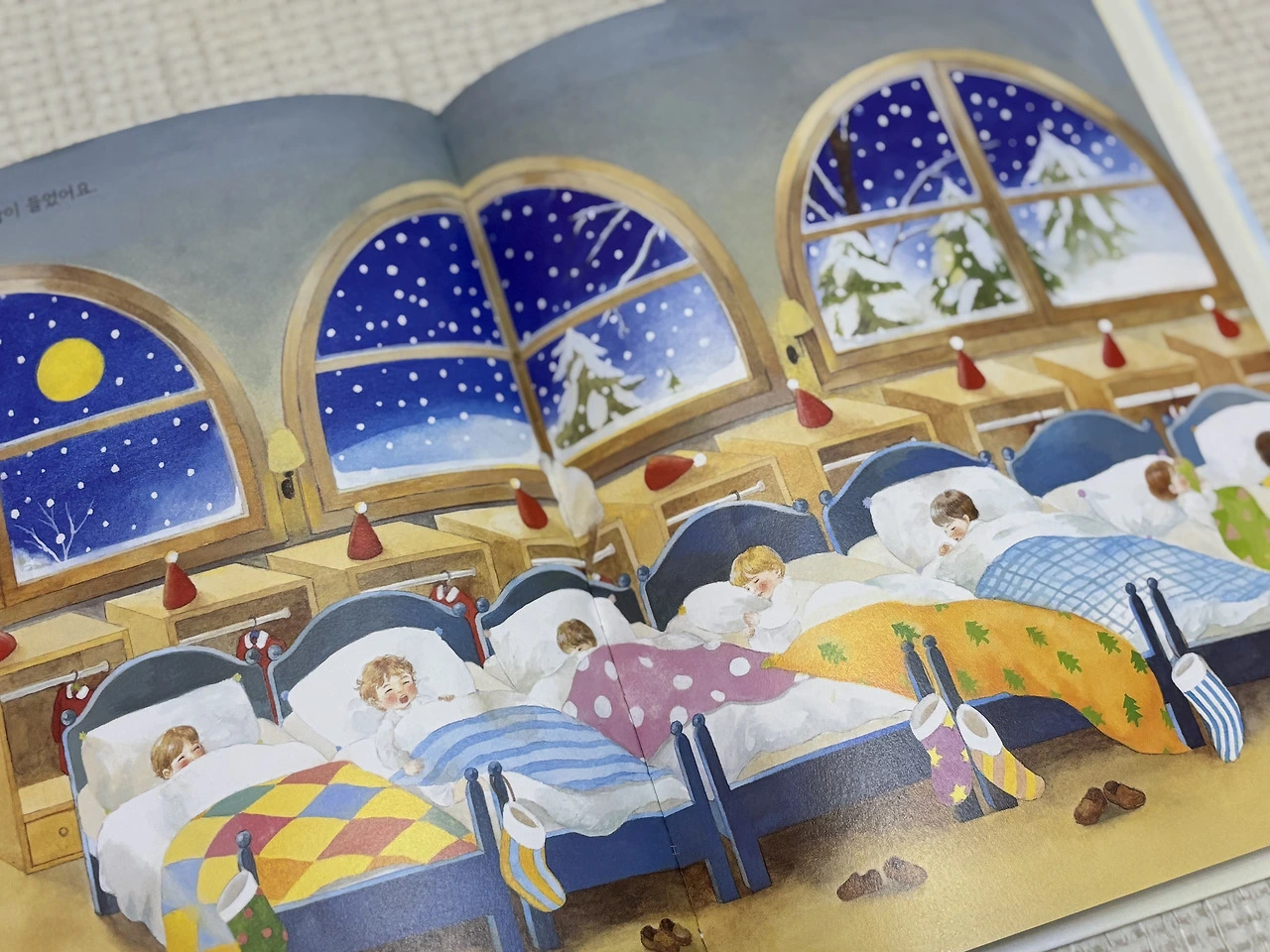 제가 기억하는 가장 설레는 시간입니다. 크리스마스 당일도 좋았지만, 저는 이브가 그렇게도 설렜습니다. 잠이 오지 않아 어렵게 잠들었는데 몇 번을 깼던 기억이 나요. 선물이 과연 있을까, 어떤 선물이 있을까, 한참을 뒤척였습니다. 열심히 하루를 보내고 누운 아이들은 세상 곤히 잠든 듯 하지만, 흐트러진 이불과 머리맡에 놓인 산타모자, 각자 침대에 걸린 양말들을 보니 누군가는 뜬 눈을 지새우고 있을 수도 있겠다 싶어요.