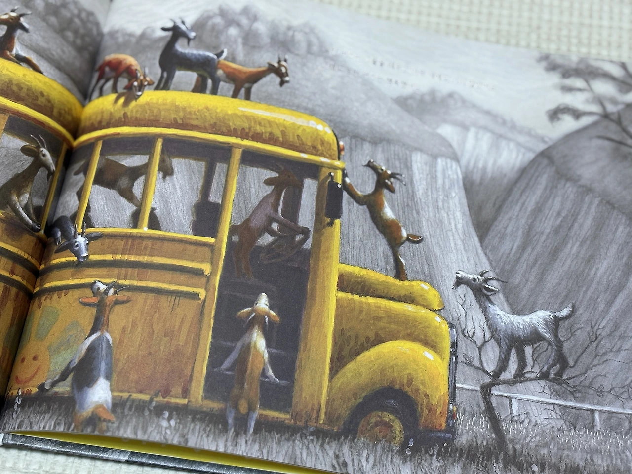 로렌 롱의 '노란 버스'라는 그림책입니다. 흑백 마을 사이로 도드라지게 노란 버스가 주인공처럼 길을 지나고 있어요. 우리나라에선 볼 수 없는 이국적인 스타일의 버스가 '마치 날 따라와 봐.'라고 꼬리를 흔드는 것 같아요. 늘 같은 구간을 오가는 버스일지, 항상 새로운 곳을 가는 버스인지, 정체는 알 수 없지만, 어딘가로 데려가 줄 수 있겠다는 설렘 하나로 책 속 버스에 탑승해 보았습니다.