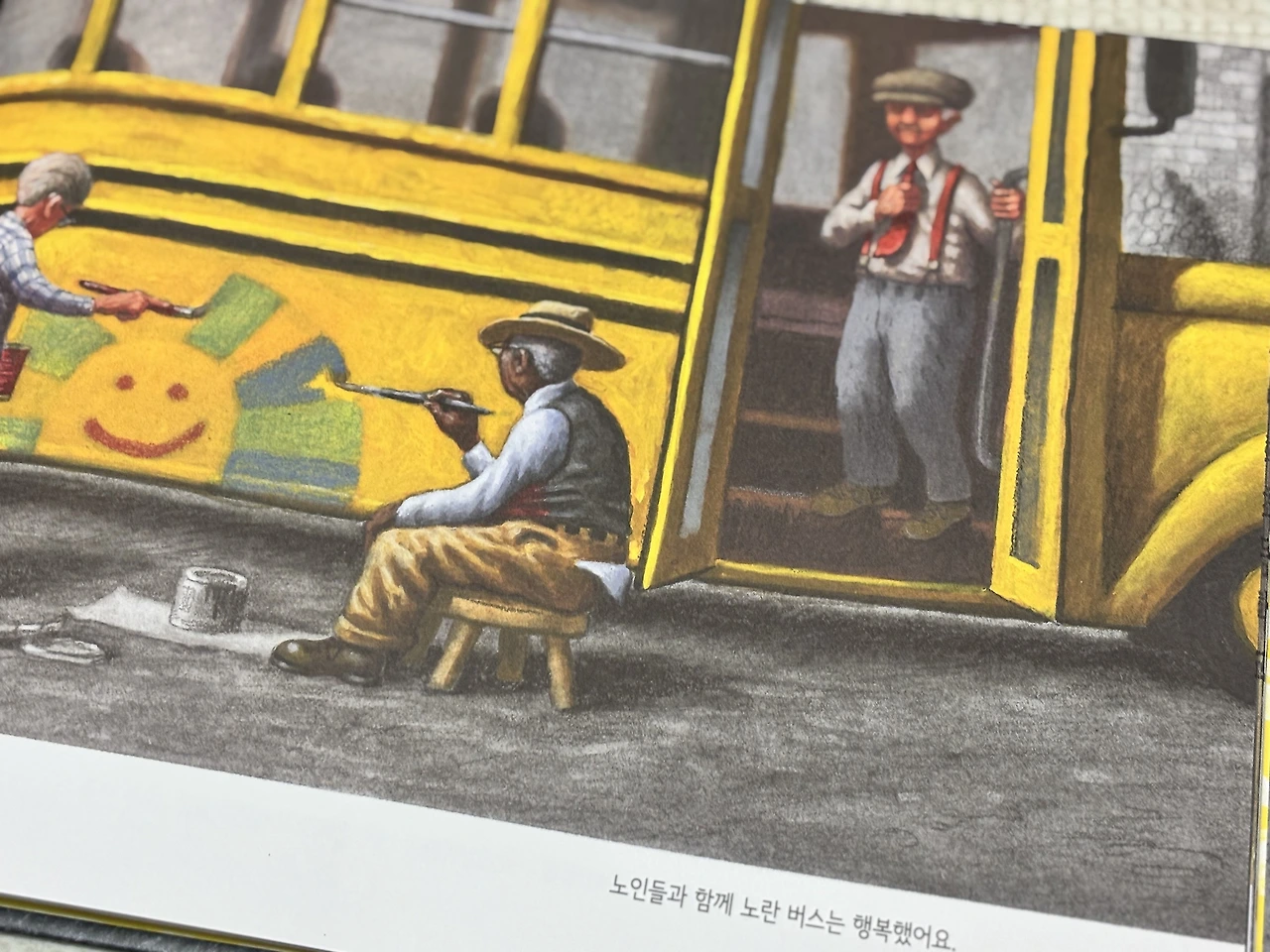 버스는 한 때 어린이들을 태우기도 했다가, 노인들을 태우는 버스로 일을 합니다. 저마다의 웃음소리와 말소리로 가득 채워치고, 그들의 삶이 어느 기간 동안 짙게 베입니다.