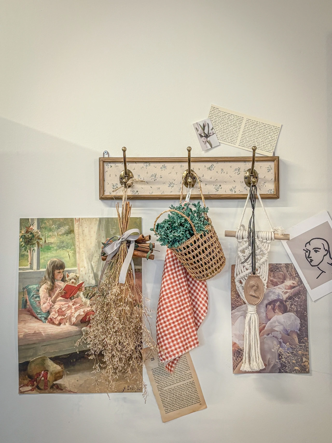 벽의 한편에 저마다 고향이 다를 것 같은 소품들이 모여 한데 걸려 있었습니다. 공통점이라곤 특별히 없어 보이는데, 어우러져 있는 모습이 꽤 그럴싸했습니다. 여러 각도와 위치로 배치했으나, 또 전체의 모습은 하나의 좋은 그림이 된 듯한 마법이 참 신기하게 느껴졌어요. 하나하나, 다른 곳에 있었더라면, 어떤 의미로 존재했을지 모르는 물건들이, 이상하리만큼 공간을 함께, 또렷하게 메우고 있었습니다.