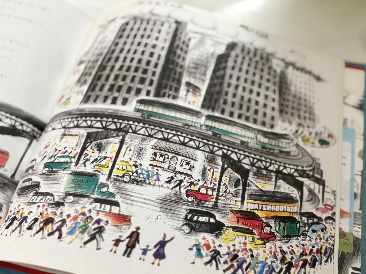 빳빳한 책 표지 한 장을 사뿐하면서도 경건히 넘겼습니다. 2020년에 제45쇄 개정판으로 발행되었지만, 여전히 최초의 삽화는 생생하게 살아있었습니다. 책 제목에서부터 '작은 집'이 주인공임을 짐작할 수 있었는데, 본격적인 이야기가 펼쳐지기 전에 주인공의 생애가 파노라마처럼 펼쳐졌습니다. 우직한 작은 집 앞으로 말이 지나가더니 어느새 작은 집 주변으론 건물이 들어서고 자동차가 쌩쌩 달립니다. 붉은색의 작은 집도 어느새 옅은 분홍색이 되었습니다.