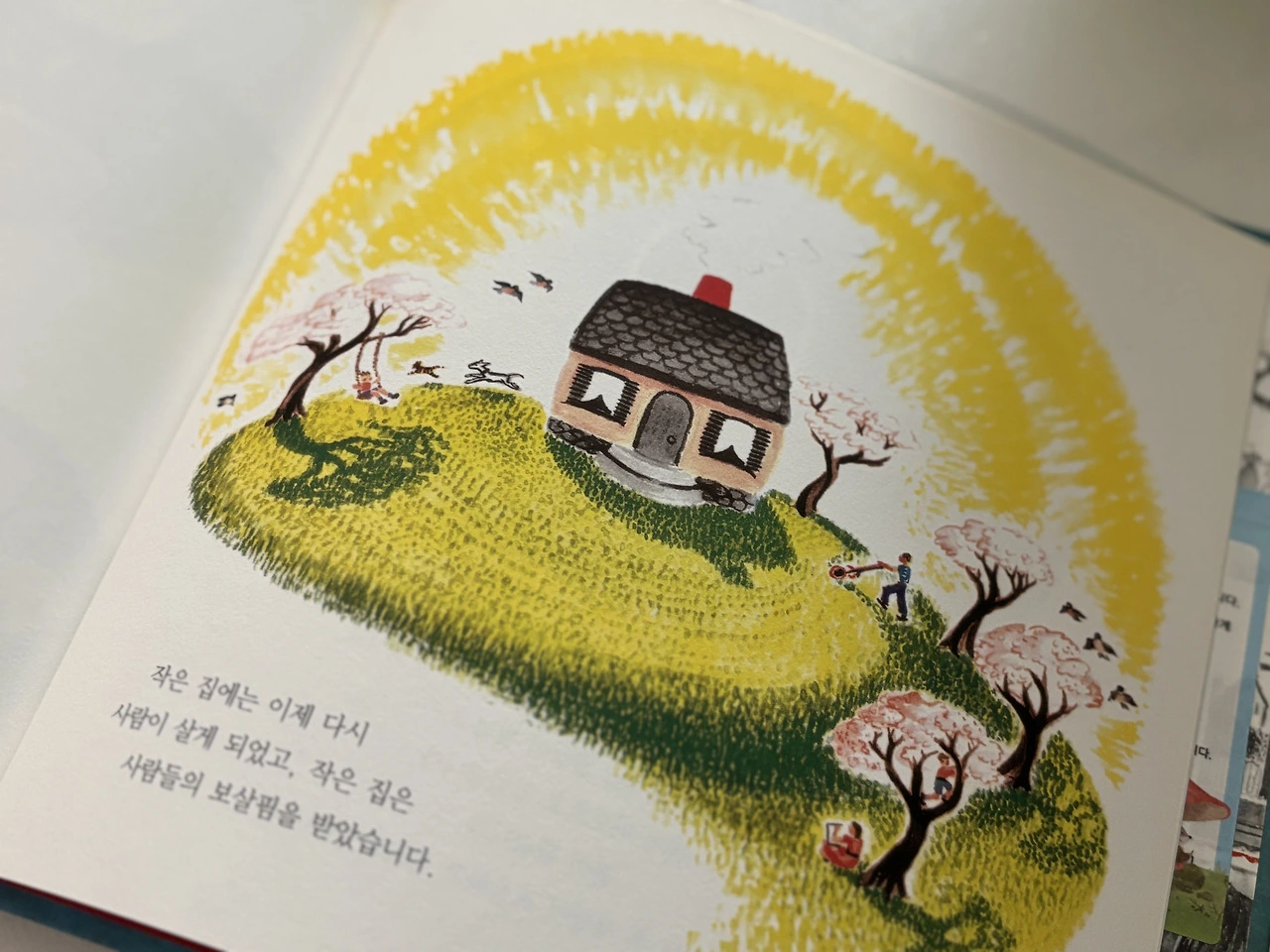 버지니아 리 버튼의 '작은 집 이야기'라는 그림책입니다. 초판 발행일은 1993년 11월 5일. 30년도 넘은 이 그림책을 우연히 마주해 보면서 역사적인 인연 같다는, 이상하리만치 광활한 느낌을 받았습니다. 여느 그림책과 한낱 평범한 독자와의 평범한 만남이었지만, 30년이란 생략된 역사를 뒤로하고, 따끈한 느낌으로 책을 쓰다듬어 보았습니다.