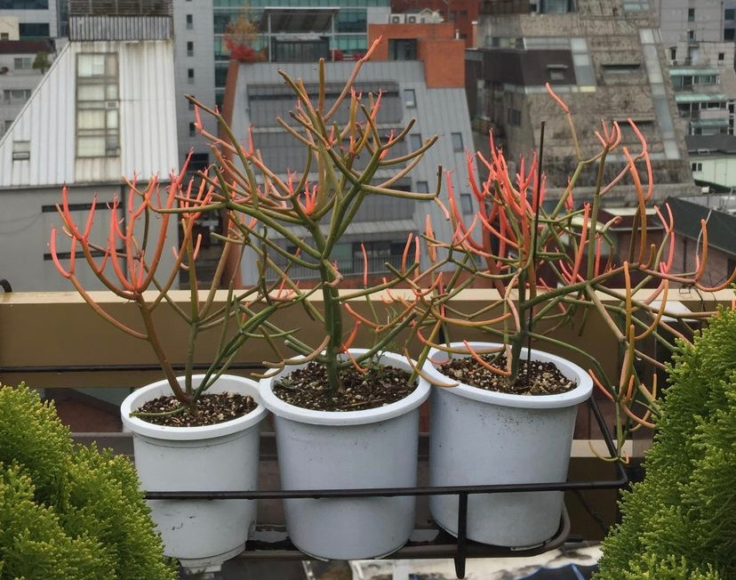 발갛고 노랗게 물든 식물들과 시원한 공기와 하늘이 가을을 알린다. 낮이 따듯하고 저녁이 추운 일교차가 큰 날이 계속되면, 식물들은 수채화처럼 천천히 아름다운 색으로 물들기 시작한다. 이는 식물들이 가지고 있는 초록색의 색소 아래 숨어있던 색들이 일교차에 의해 천천히 모습을 드러내는 원리인데, 나는 오로지 이 짧은 찰나에 볼 수 있는 단풍을 참 좋아한다. 이는 유명한 산지나, 가로수의 나무들 뿐만 아니라 우리 주위에 있는 모든 식물들이 겪는 현상이며 우리가 생각하지 못하는 선인장과의 다육이들도 가을에는 아름다운 색으로 물들어 간다.