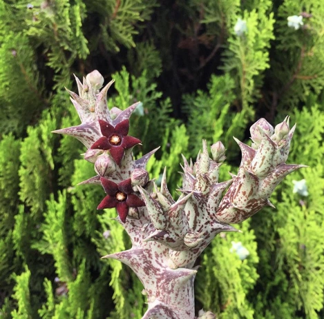 이와 반대로, 겉으로는 날카롭고 두꺼운 가시를 가지고서는 딱 봐도 '건드리지 마'라고 말하는 듯한 모양의 식물도 있다. '흑룡각'이라는 다육 종류의 식물이다. (선인장도 다육 종류의 하나이다)