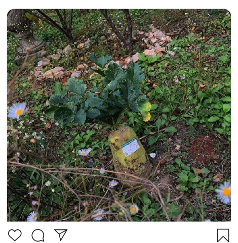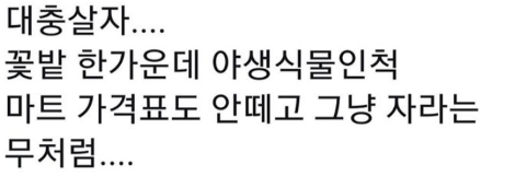 어떤 사연인지는 모르겠으나, 꽃밭 한가운데 떨어져 악착같이 살려고 그곳에 뿌리를 내린 무처럼 보인다.