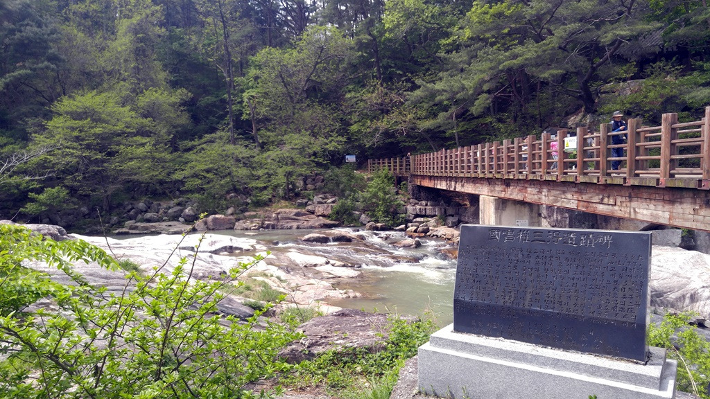 ▲용호구곡 제6곡 '지주대' 앞 구룡계곡을 가로지르는 다리