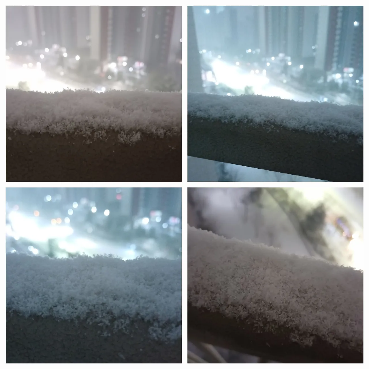 글을 쓰다가 갑자기 궁금해졌다. 아직도 눈이 내리는지. 살짝 창문을 열어보니 온 세상이 하얗다. 이번에는 사진 앱을 열었다. 영상보다는 익숙한 손놀림이다. 구도를 바꿔가며 찍어보고. WB(화이트 밸런스)를 바꿔서 또 찍어 보았다. 푸르댕댕하게 찍으니 더 차가워 보이는군. 그런데 어두워서 그런가. 접사 촬영이 안 된다. 쌓인 눈을 아주 가깝게 찍고 싶었는데. 아쉽다. 바람이 너무 차가워 몇 장만 찍고 창문을 닫았다.