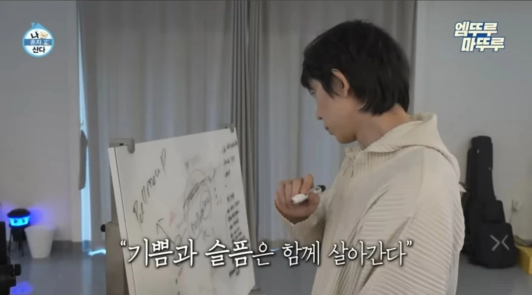 며칠 전에 딸과 함께 나 혼자 산다를 봤어요. 코쿤이 음악을 만들면서 메모를 하더라고요. 그 메모 끝에 코쿤이 깨달은 것은요. 기쁜 일과 슬픈 일은 함께 온다예요.