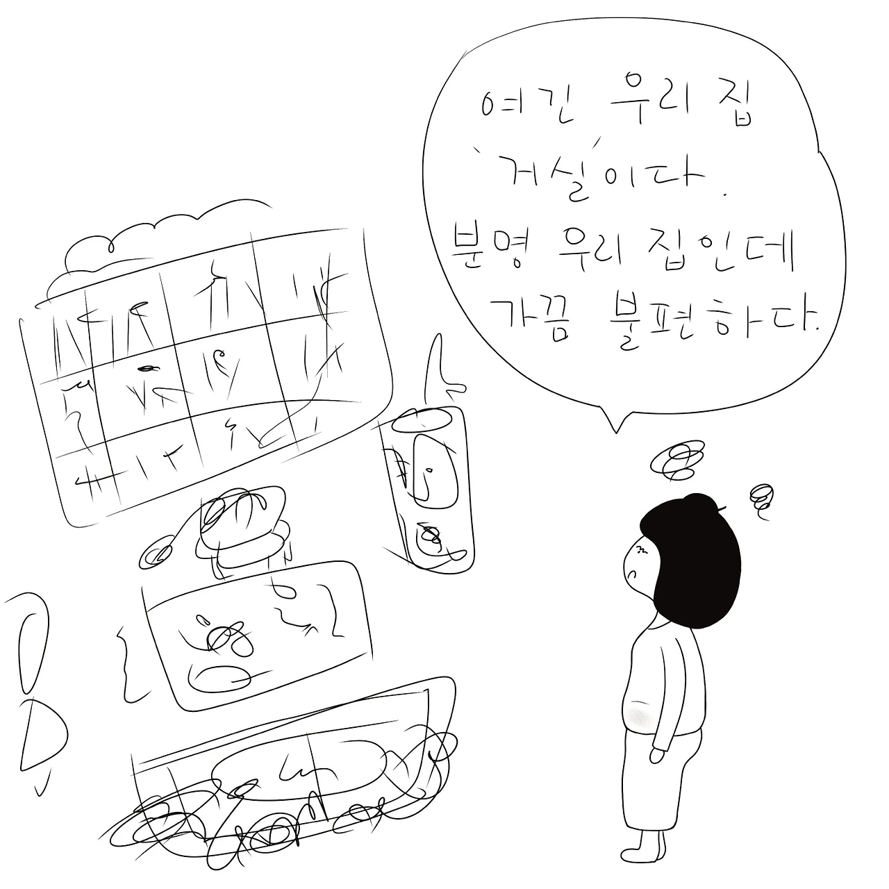 작가의 이 말이 오늘 계획한 일을 못해 시간을 낭비했다고 자책했던 나에게 위로가 되었다. 물론 비장소에 있지는 않았지만. 가끔 나만의 보금자리인 집이 비장소처럼 느껴질 때가 있으니. 괜찮다. 그럴 때도 있는 거니깐. 비장소인 거실에서 청소를 하면서 멍을 때릴 수도 있다.