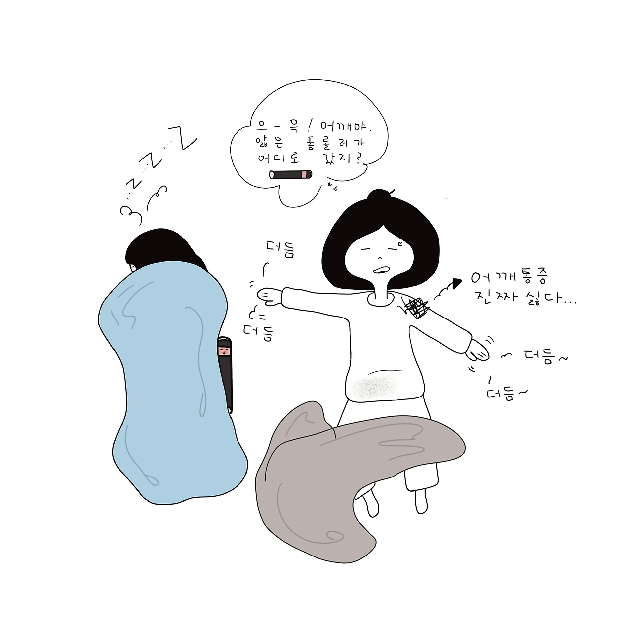단지, 이번 램수면 상태에서는 보통의 패턴이 깨졌을 뿐이다. 잠결에 왼쪽 어깨 근육이 불편해서 얇은 폼롤러를 찾아 손을 더듬거렸다. 더듬거리지 말았어야 했다. 불편한 근육에 마음 쓰지 말고 그냥 깊은 수면의 세계로 빠져들었어야 했다. 하지만 며칠 동안 감쪽같이 사라졌던 폼롤러였다. 아무리 찾아도 보이지 않아 폼롤러의 맛을 느끼지 못했기에 쉽게 포기할 수 없었다. 뭉친 근육과 근막을 지그시 눌러야 다시 잠이 들 것 같았다.