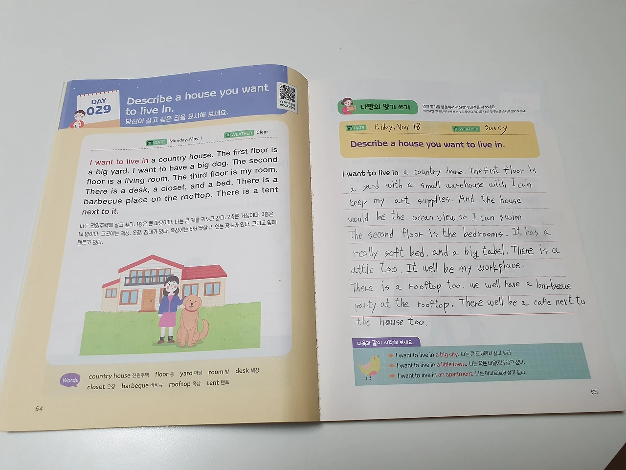 우선 수학은 책 읽고 개념 정리하기. 문제집 풀고 오답 정리하기가 필요해. 벌써 적고 있구나. 영어는 집중 듣기, 영어일기, 문법 만화책 읽고 개념정리. 사회와 과학은 책 읽고 개념정리. 아, 작년처럼 일주일씩 번갈아 가면서 할 건가. 그래 똑같이 하는 게 좋겠다. 마지막으로 문학 책을 읽고 독서 기록장 쓰기. 독서 기록장을 다 썼다고? 어, 그럼. 다시 주문할게. 작년하고 다른 걸로 해볼까. 좋아, 우선 내가 찾아볼게. 역사책은 읽기만 할 거니깐 요일만 정해주고, 주말 빡독(빡세게 독서하자.) 잊지 말고. 다 적었니. 그래 그래. 고생했다. 잘했어.