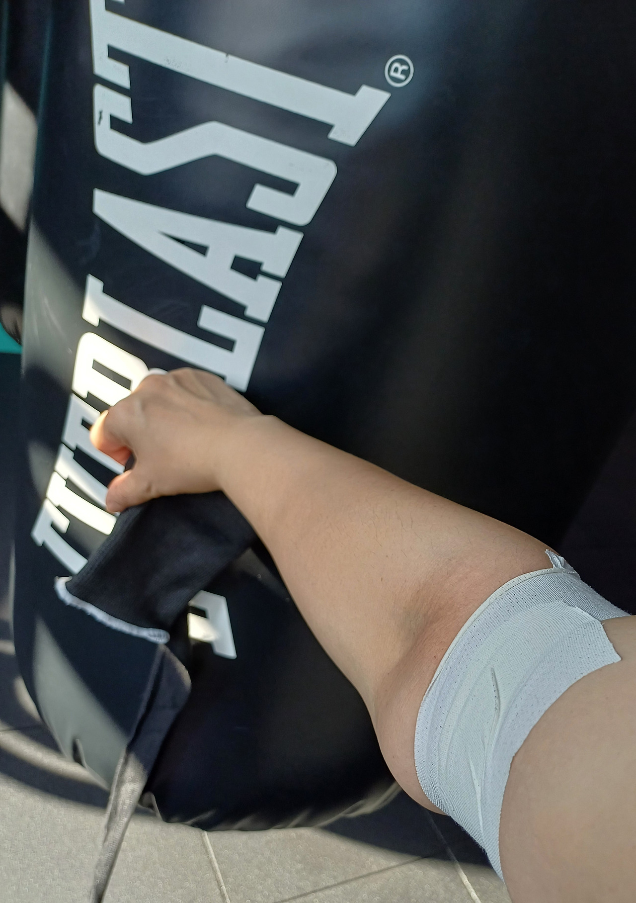 절대로 면테이프에 겁먹은 것은 아니다. 아파봤자. 그냥 테이프를 뗄 때 느끼는 고통의 범위일 테니깐. 그리고 관장님이 팔과 손가락에 많이 붙인걸 보니 죽을 만큼의 아픔은 아닐 테니깐. 그저 ‘처음’이 주는 부담감 때문에 주저한 것뿐이다. 칭칭칭. 아주 단단하게 감고 있는 관장님. 참 고마운 마음이 든다. 진심으로. 음… 그런데, 테이프를 진짜로 세게 붙이셨나 보다. 내 팔꿈치 주변에 있던 살들이 테이트 옆으로 아주 불룩하게 튀어나와 있다. 팔꿈치 고통이 줄어든 대신 감춰왔던 살집과 마주하는 고통을 느끼게 되었다. 아! 무슨 일이든 이득이 있으면 대가가 따르는 것이었지. 어쩔 수 없다. 감수할 것은 감수해야지. 그냥 모른 척하기로 했다. 바람막이 겉옷을 입으면 보이지 않을 테니. 모른 척할 수 있다.