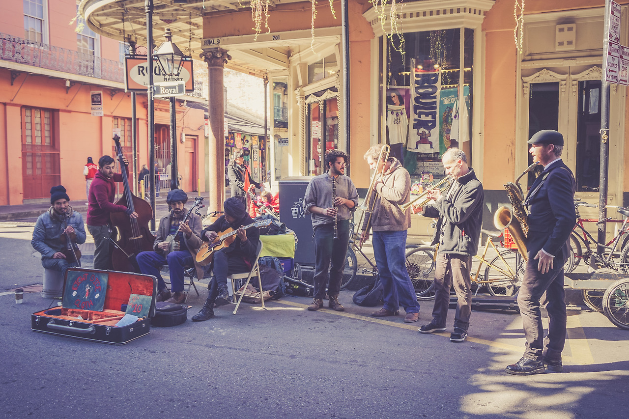 밥을 먹고 나와서 뉴올리언스 문화 거리인 프렌치 쿼터를 걸어 다녔다. 프렌치 쿼터에서는, 특히 버번 (Bourbon) 거리와 로열 거리는 골목골목마다 노래를 하고 연주를 하는 사람들이 즐비해 있다.