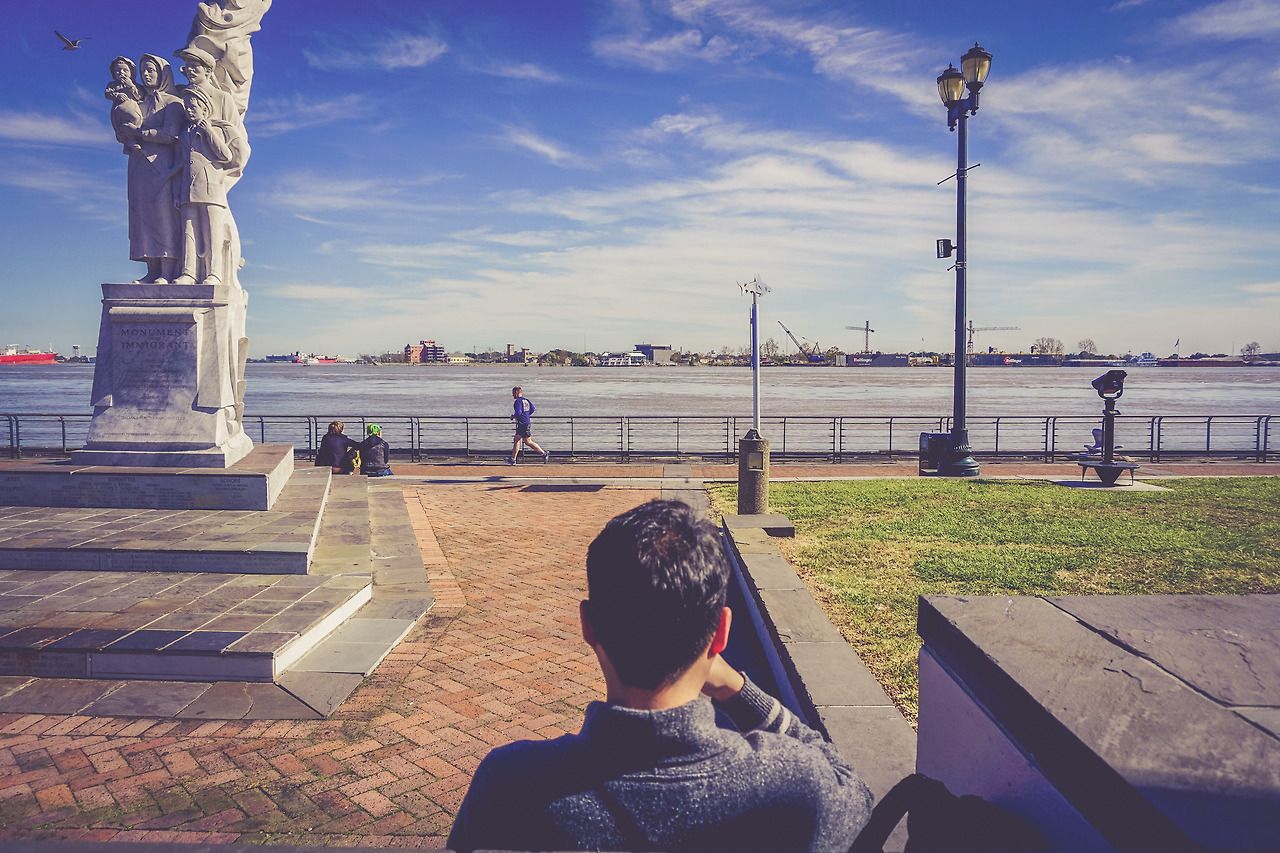 뉴올리언스의 날씨는 대체적으로 따듯한 편이다. 시카고나 뉴욕이 최고 온도 영하 10도, 15도로 한파를 겪을 때 뉴올리언스는 여유롭게 영상 15도, 20도를 찍었다. 다만 일교차가 좀 커서 밤에는 영상 3도, 4도 이렇게는 한다. 날씨가 따듯한 오후에는 미시시강가에 가면 예쁜 사진을 찍을 수 있었다. 물도 맑고 색감이 예쁜 편이었어서 꽤 오랜 시간 서서 사진을 촬영했다.