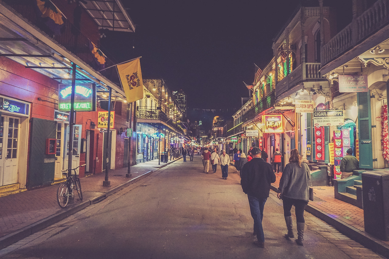 밤하늘의 뉴올리언스는 낮과는 또 다른 면모를 가지고 있다. 낮엔 한적하고 조용한 재즈 음악이 들려온다면 밤에는 사람이 득실대고 흥겨운 재즈 음악이 들린다. 뉴올리언스는 미국에서 라스베가스와 함께 유일하게 길거리에서 음주가 가능한 도시다. 어떤 이들을 이런 문화를 보고 라스베가스와 뉴올리언스를 미국의 소돔과 고모라라고 일컫기도 한다. 뭐 보수적인 시각에서는 그렇게 보일 수도 있겠지만 어둠이나 사악함이 느껴지기보다는 그저 문화를 즐기려는 사람들의 흥겨움만 느낄 수 있다.