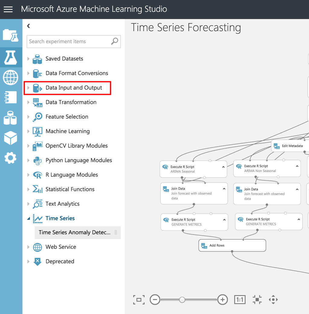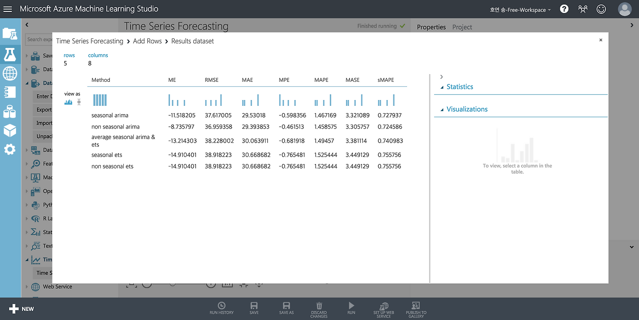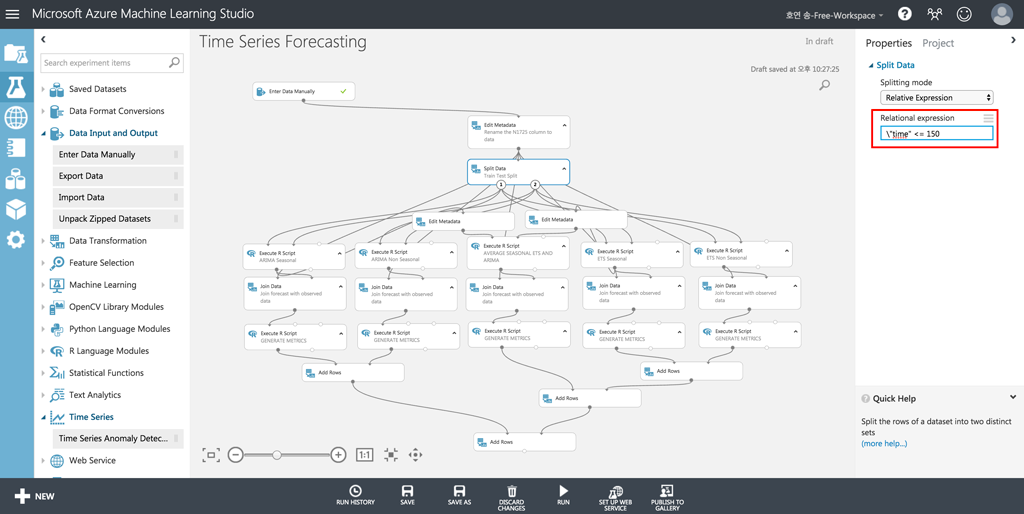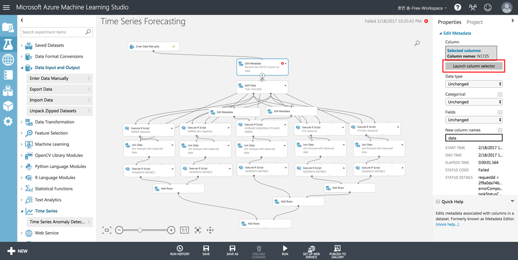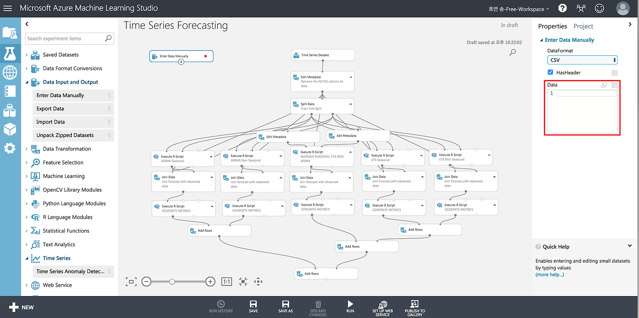 EXPERIMENT 메뉴에서 맨 아래로 내려서 Time Series Forecasting 항목을 선택합니다.