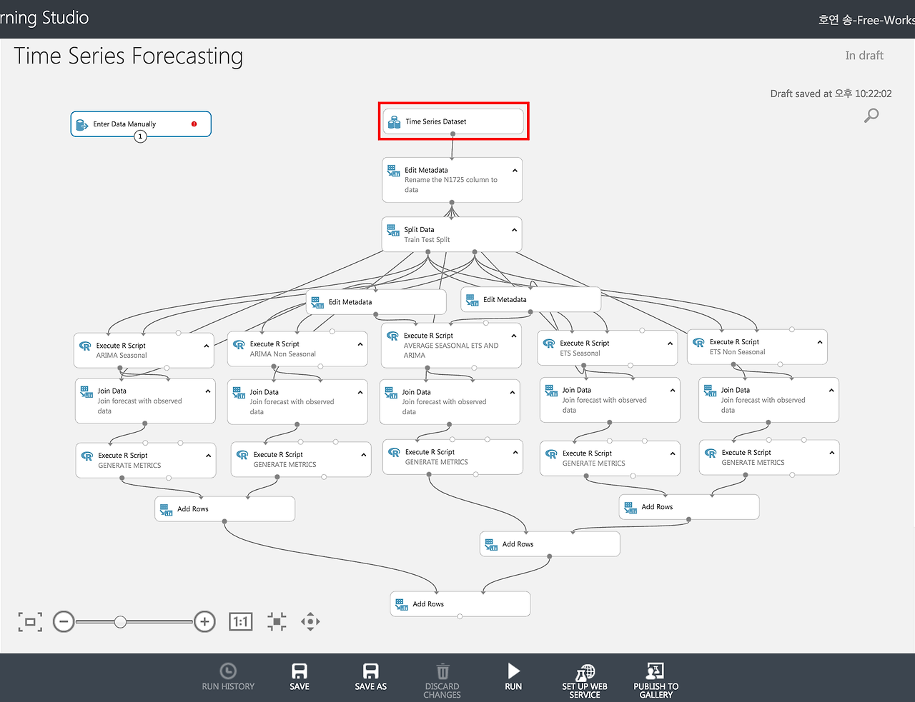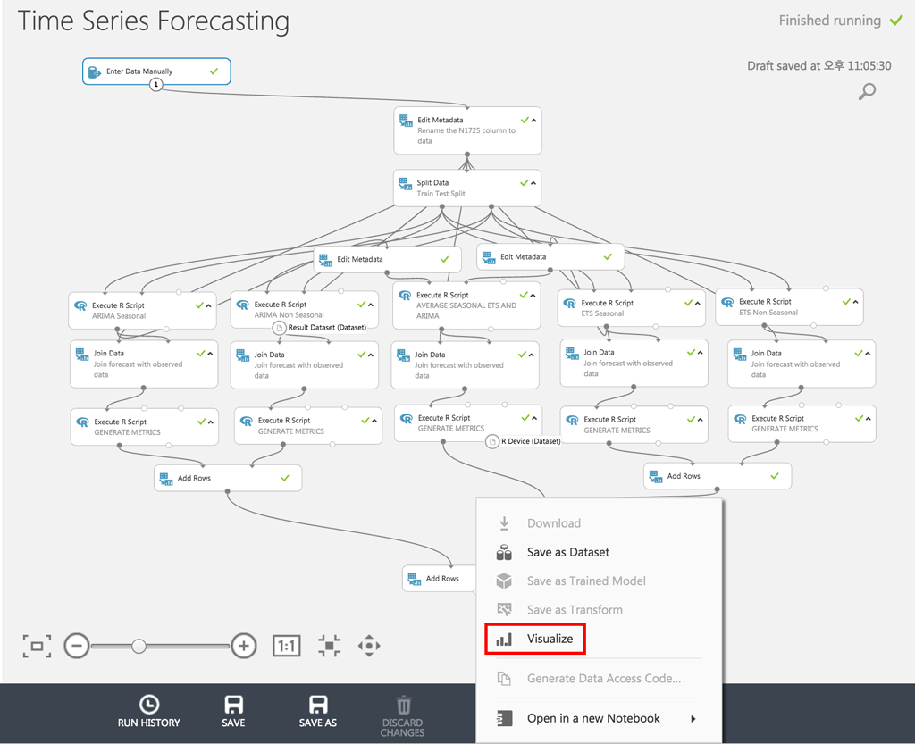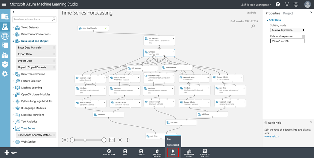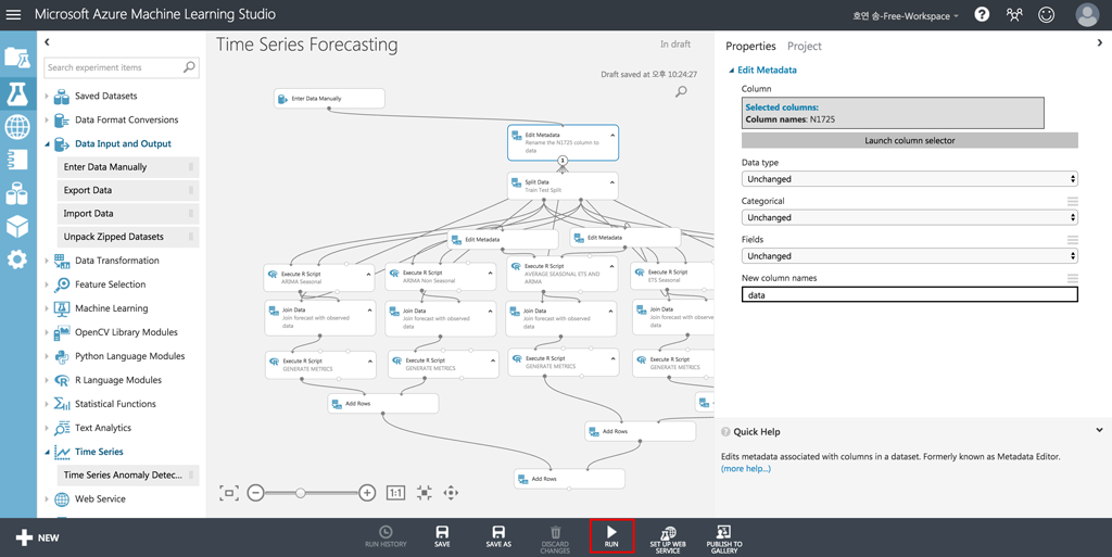 14. 그러면 [RUN] 버튼을 눌러서 예측 모델을 실행시켜보겠습니다.