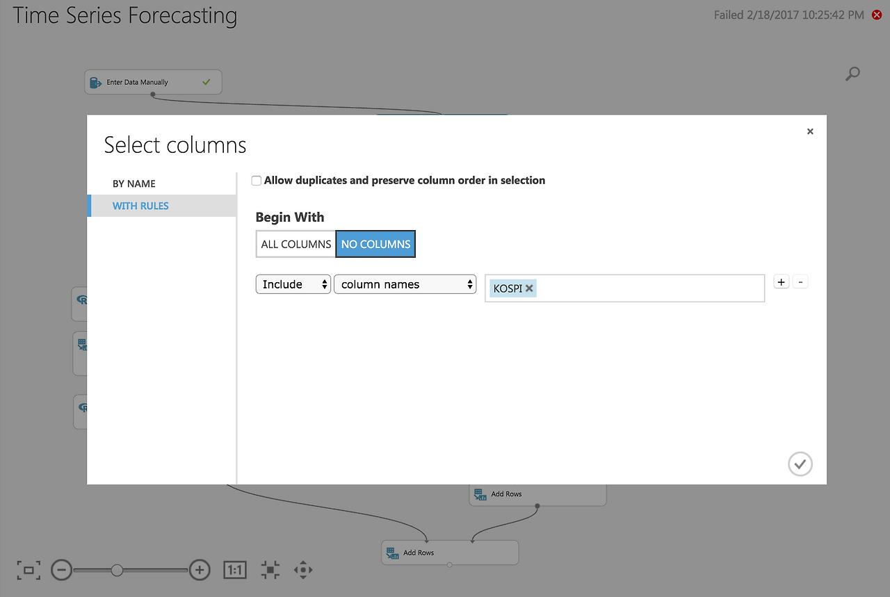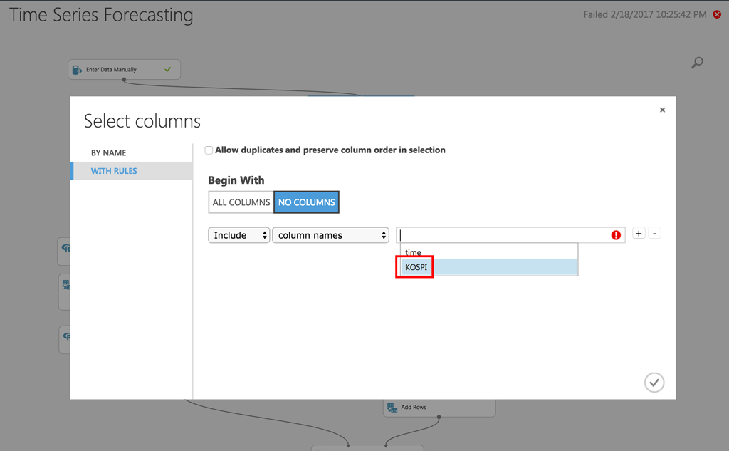 18. 그리고 우리가 입력한 KOSPI 데이터의 컬럼명인 "KOSPI"를 선택합니다.