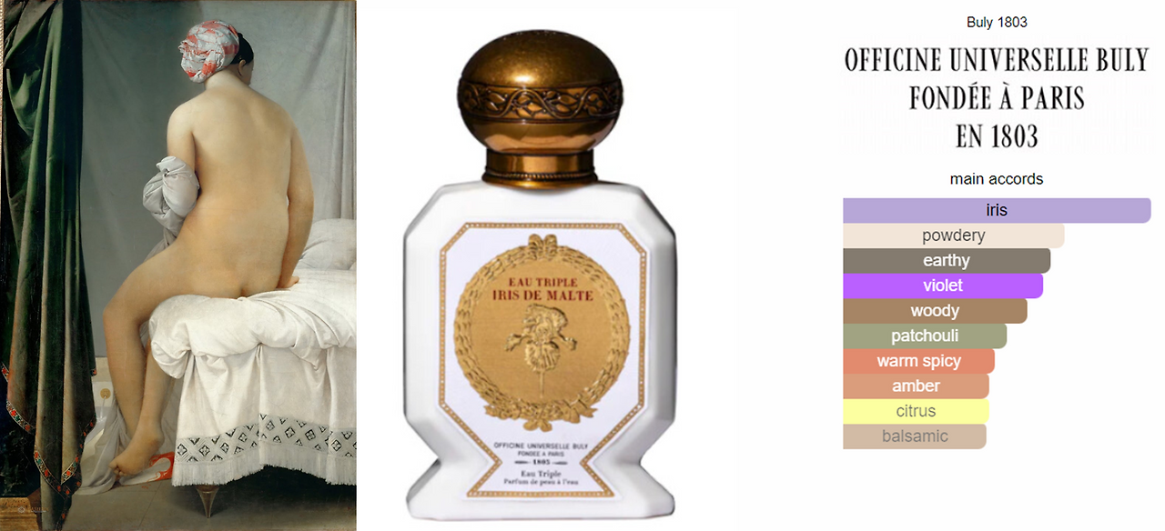 제가 가장 좋아하는 불리 1803의 향수는 루브르 박물관과 협업하여 탄생한 오 트리쁠 이 리드 말트(Eau Triple Iris De Malte, 목욕하는 여인)입니다.
