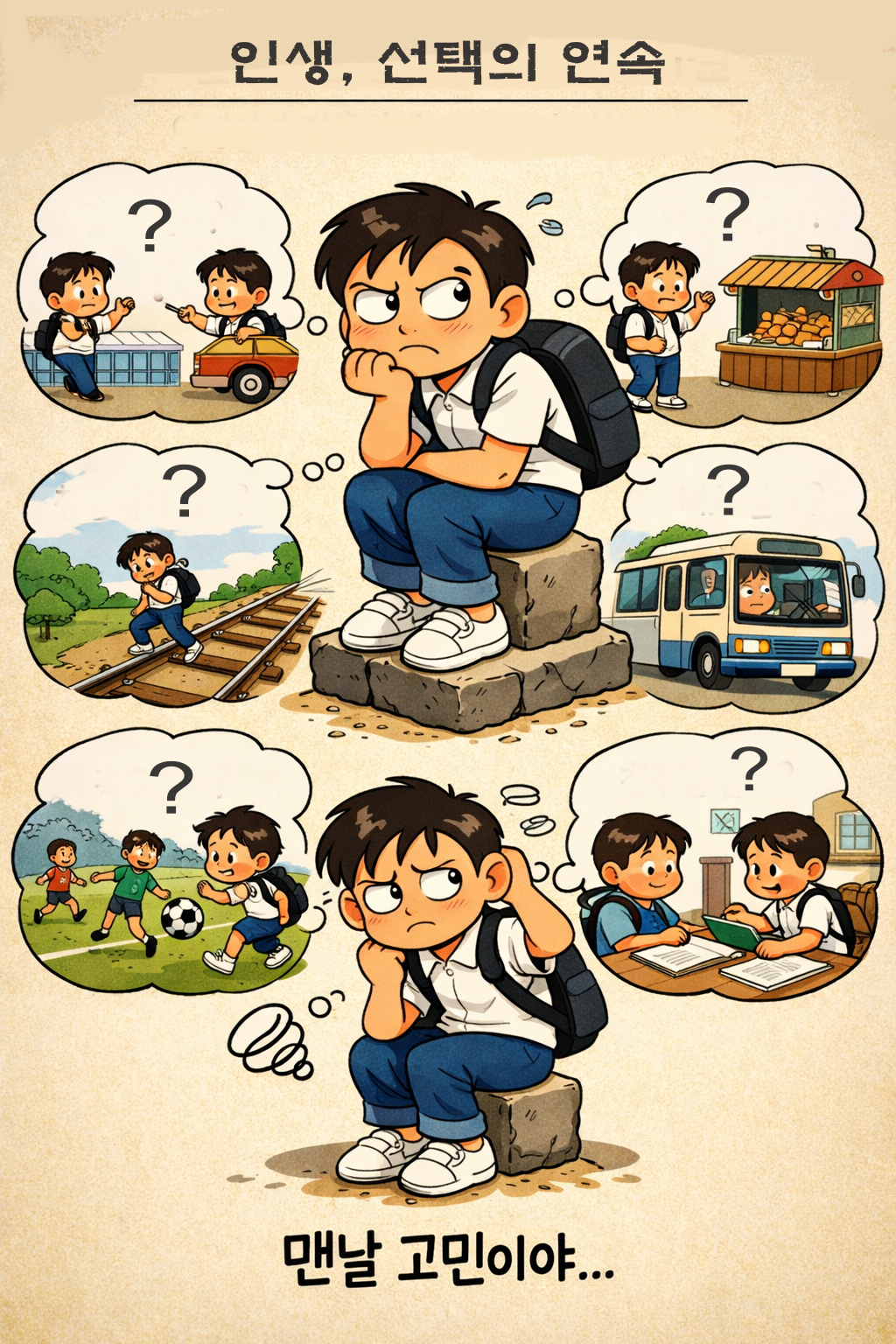 철학자 사르트르의 말처럼, 인생은 선택입니다. 그래서 새해는 우리 앞에 쏟아진 수많은 선택지라는 거대한 메뉴판 앞에 서 있는 것과 같습니다. 어느 누구도 이 선택의 굴레를 벗어날 수는 없습니다. 달콤한 꿈속을 헤매다 들려오는 알람 소리를 끌 것인가 말 것인가 하는 아주 사소한 갈등에서부터 우리의 하루는 시작됩니다. 눈을 뜨는 순간, 이미 '선택'이라는 일과가 시작되는 셈입니다.