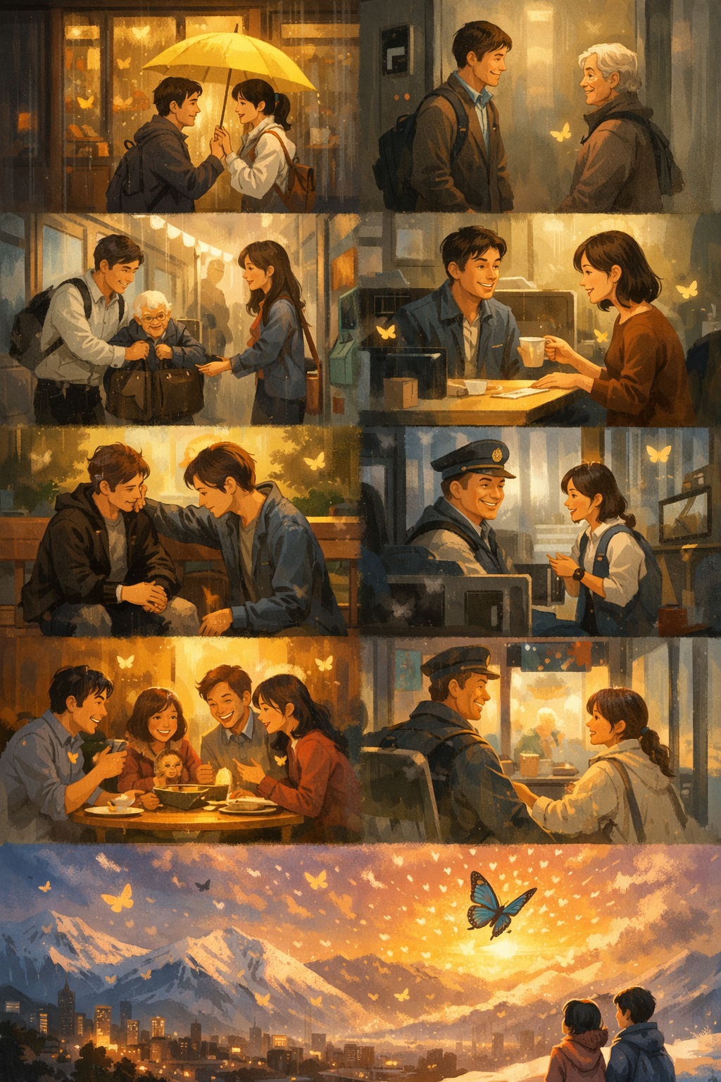 엘리베이터에서 이웃을 마주쳤을 때 건네는 "오늘 날씨가 참 궂네요"라는 무심한 한마디도 마찬가지입니다. 우리는 대개 이런 찰나를 공중으로 흩어지는 무의미한 일상으로 치부하곤 합니다. 하지만 이 짧은 순간들은 사실 '연결의 바다'라는 거대한 수면에 던져진 작은 조약돌과 같습니다. 나비의 작은 날갯짓이 먼 곳에서 거대한 폭풍을 일으키듯, 우리의 사소한 다정함은 누군가의 하루를, 어쩌면 그 사람의 생의 궤적을 바꾸는 '연결의 나비효과'를 일으키기 때문일지 모릅니다.