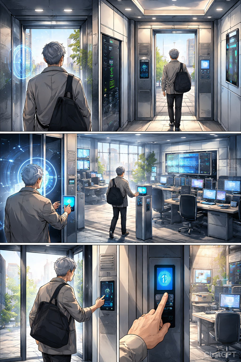 예전 연구실까지는 도보로 15분이면 도착한다. 연구실이 위치한 빌딩 출입구에 서자 카메라는 얼굴 인식만으로 문을 열어준다. 정해진 엘리베이터에 오르면 내가 갈 층수에 자동으로 불이 들어오고 문이 열린다. 연구실 입구에 다다라 지문을 인식하면 비로소 은퇴 전 내가 일하던 공간으로 들어서게 된다.