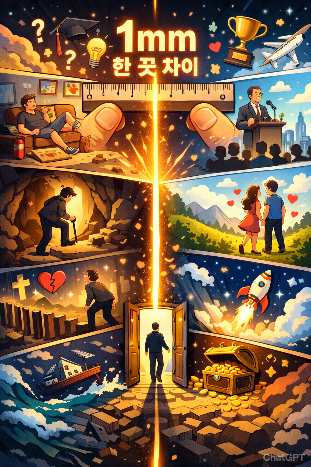 나는 그것을 1mm라고 표현하고 싶다. 측정하기도 민망한 크기. 자 위에서 눈을 가늘게 떠야 겨우 확인되는 그 간격이, 때로는 전혀 다른 세계로 향하는 문이 된다.