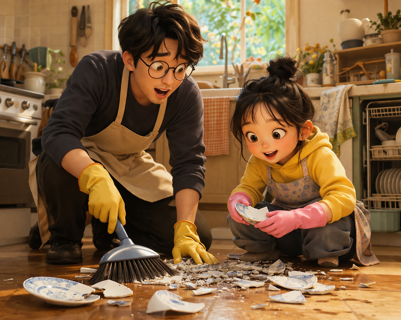 그러던 어느 날이었습니다. 평소처럼 깔깔거리며 장난을 치다 그만 접시 하나를 박살 내고 말았습니다. 바닥에 흩어진 파편들을 조심스레 치우다 문득 딸에게 물었죠.