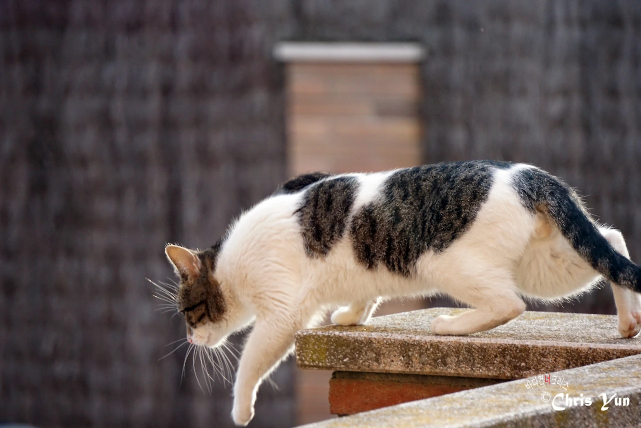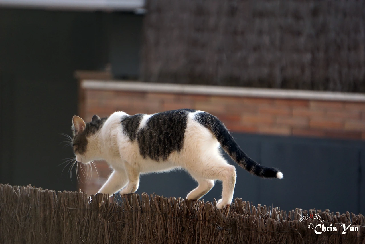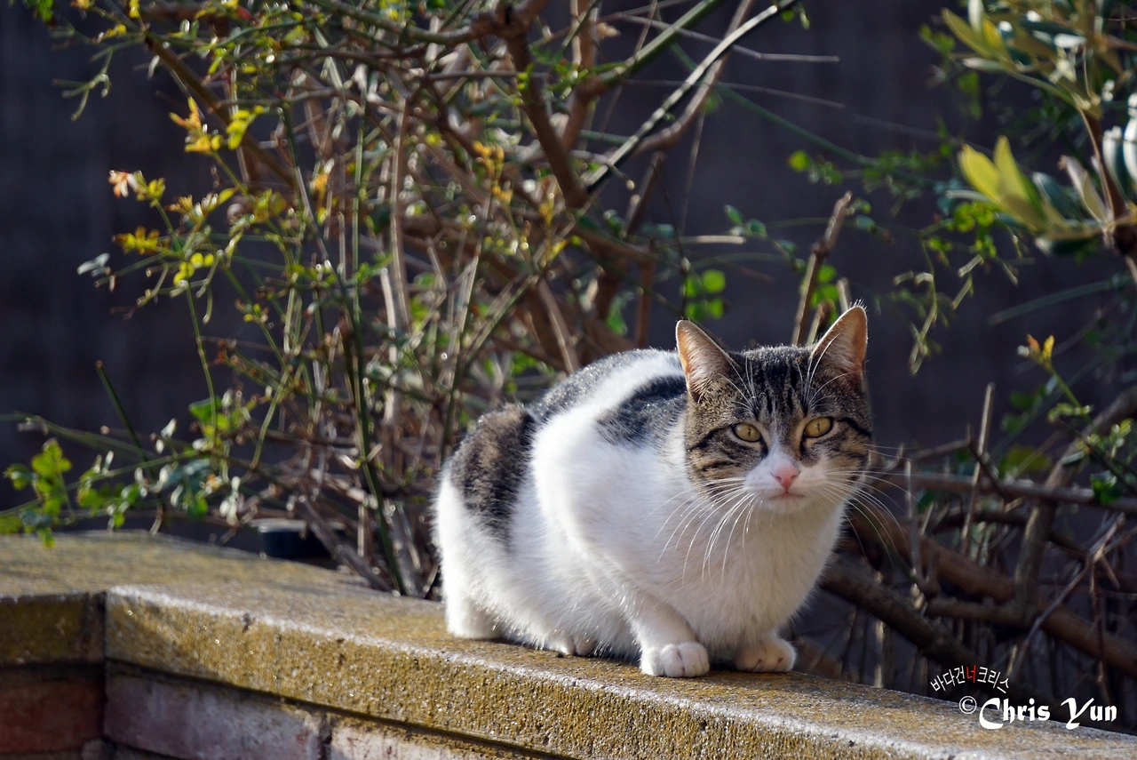 그러거나 말거나... 요 녀석은 매일매일 담장 위에 나타나 만두를 빤히 노려본다.